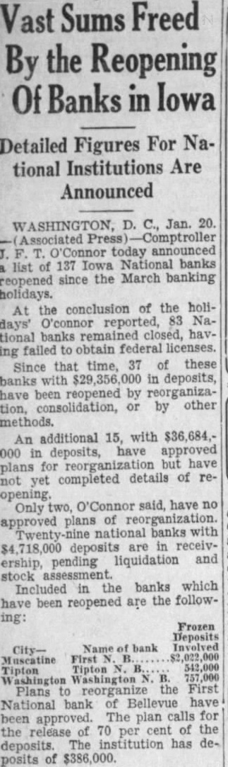 TIPTON BANK SHORT $130,000. President and Examiner Confer, But Fail to Solve Mystery. Tipton, Aug. 5.-President Shirk of the First National bank of this city. whose home is in Peru, Ind., reached here and went over the report that Examiner Weir is preparing for the department at Washington. Neither he nor the examiner would give out anything in respect to the report, but it Is understood from other reliable sources that Marker's shortage, If the bad debts are considered, will run close to $130,000. The one mystery of the case now is the missing $60,000 or $70,000 that disappeared on the night of Marker's flight, and It is said that the examination does not throw any light on the subject. The report will show definitely, however, just what sum was or ought to have been in the vault on Saturday night of July 23, and when the report is made public it will be known exactly with what sum Marker is to be charged with having taken. The township trustees, all of whom have their deposits with the First National bank, met here with the county officers, whose county funds are simllarly tied up, and went over the situation today. It was agreed that the bank would reopen and that it would be unwise to begin actions for recovery of the funds.