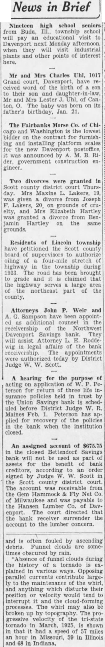 Butler Township Holst, Albert Cleona Township Robert Hugo Dietz. Davenport Township, First Precinct Henry Carstens, Joe Davenport Township, Twp. Thode, Murphy, Louis Hickory Grove Township Albert James Holst, Ferd Meyer. C. Regina Casilly Miller, Henry J. Petersen, H, Regineter. Township Lage, Walter H. Harry Pleasant Valley Township Schmidt, Albert Clerks- John Hanne. Bertha Kuehl. Princeton Judges- Wm. Herman Kroeger. Schmalz, William Haines.