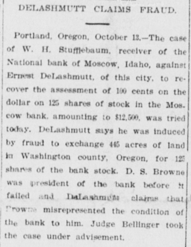 Telegraphic Briefs. Charleston, S. C.-Bill Dodgins died in Pickens county, S. C., aged 103 years. New Orleans.-Cardipal Gibbons arrived in the city on a short visit to relatives. New Orleans.-Edward Conery, Sr., the well-known millionaire merchant, died. New Orleans.-George R. Finley, head of the large drug firm of Finley, Dicks, & Co., died. London -Thomas Batement, who was twice president of the Primitive Methodist Conference, is dead. New Orleans.-E. Conrey, Sr., the steamboat king of the South, and one of New Orleans's wealthiest citizens, died. Salt Lake, Utah.-The day's three ballots in the State Legislature for United States Senator developed no material change. Rome, Italy -The University was closed, owing to riotous conduct on the part of the students. Several of the ringleaders were arrested. Spokane, Wash.-The First National Bank of Oakdale, Spokane county, has gone into voluntary liquidation. Depositors are notified to come and get their money. London-The House of Commons, by a vote of 325 to 110, passed the financial proposal in the educational bill to grant to voluntary schools the sum of 5 shillings per child. New Orleans.-The House River and Harbor Committee arrived in the city this morning from Texas, and left immediately on their return trip. They will stop over at Birmingham, and be entertained there. Moscow, Idaho-The Moscow National Bank was closed by Bank-Examiner Eugene I. Wilson, of Ellenburg, acting under the orders of Comptroller Eckels. R. C. Brown is president, and C. M. Brune, cashier. Pittsburg, Pa.-In the Court of Common Pleas, George S. Griscom and H. E. Anderson were appointed receivers for the Pennsylvania Lead Company, of Pittsburg. Judgment was confessed to Trustee Griscom for $949,000. New York.-Bob Fitzsimmons expects to start for Nevada on February 12th, as he wishes to have four weeks' hard training for the big fight. It is likely that a watering-place about three miles from Carson City will be selected. London -Edward R. Taylor, alias Arthur W. Platt, who is under arrest for killing Jesse Tyree in Kentucky, in 1885, was formally extradited in the BowStreet Police Court, and will be taken to America at once by Kentucky officials. Charleston, S. C-A letter from Admiral Bunce to Mayor Smith, says that nearly all the ships of the squadron of evolution will come into the harbor after the manoeuvres outside, and that an exchange of courtesies will be in order, Madrid.-The Infanta Marie Louise Ferdinande, Duchess of Montpensier, is dead; aged 65 years. She was a sister of ex-Queen Isabella II., of Spain; grandmother of the King of Spain, and was married in 1846 to the Duke of Montpensier, who died in 1890. Canton. O.-There are over one hundred cases of typhoid-fever in the city, The cause is attributed to the water-supply. There have been several deaths, Mrs. Emma Troll, formerly an amanuensis for Major McKinley, being among those who have succumbed to the disease. Sterling, Ill-The extensive works of the Keystone Manufacturing Company. Thomas A, Galt president, were closed by the Sheriff, on a levy made in favor of Mr. Galt for $89,085. and the First National Bank of Sterling for $9,996. The Keystone company manufactured all kinds of farming implements.