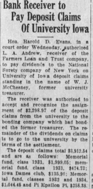 City Trust & Savings bank, Boone, (Accounting adjustment resulting in an increase in loan authorization previously reported.)