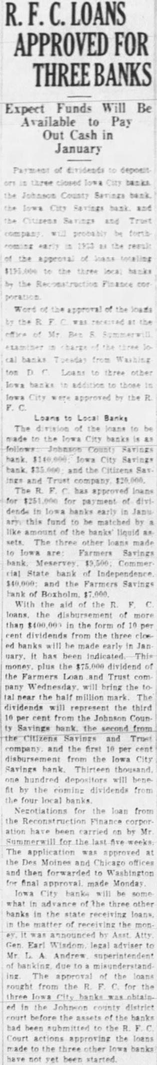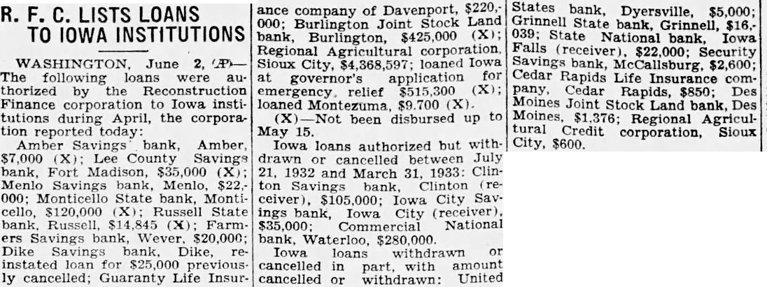 R. F. C. LISTS LOANS TO IOWA INSTITUTIONS