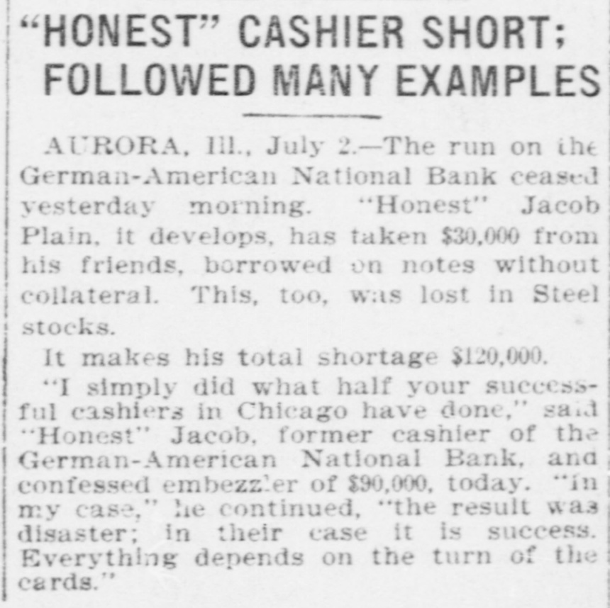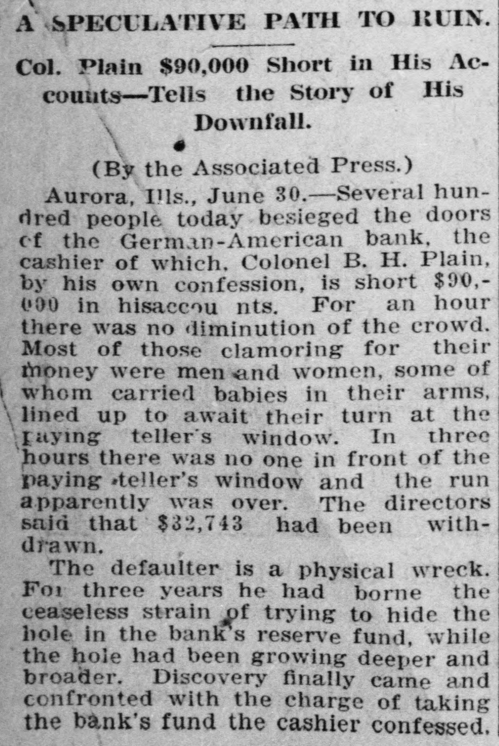 OCEANS Concise Summary of the Wired News of a Week. Important Happenings and Things of Interest from All Over a Great Country. Wednesday, June 29 The prohibition party is holding national convention in Indianapolie. Gen. Quite a boom is in progress for Nelson A. Miles for president. The town of New Boston, Arkansae 25 miles south of Texarkana, has been wiped out by a tornado and several people killed. The advance guards of delegates to the national democratic convention are gathering in St. Louis. The chances favorable for a warm time among the Bourbons. Jacob H. Plain, cashier of the GermanAmerican National Bank of Aurora, III., has been arrested, charged with the misappropriation of $65,000 of the funds of the bank. Over 500 homes, business houses and schools, A short distance from Pittsburg, Pa., have been inundated by a cloud buret. One life is known to have been lost. Fire has devastated the lower half of the village of Lake Placid, N. Y., a wellknown summer resort. A rainstorm set dein and saved the town from utter struction. Thirty-nine men deported from Cripple Creek under military escort,have arrived in Denver and joined the colony of exiles already located there. This colony numbers over 200 men and they have organized a local union affiliated with the Western Federation of Miners. Thursday. June 30. The prohibition party in national con vention at Indianapolis, Ind. has nominated Silas C. Swallow of Penneylvania for president and George W. Carroll of Texas for vice president. A ealoon at Walkerville, Mont., was entered by masked men and $1000 i money and valuables secured from the proprietor and inmates. The robbers escaped. After a trip around the world, John Alexander Dowie has arrived in Chicago. Dowie will now answerin the bankruptcy court, the proceedings having been brought before his departure for Aue tralia. W.H. Maxwell, euperintendent of in atruction of New York City, has been elected president of the National Educational Association which has been in convention in St. Louis. The postmaster general has declined the request of the Louis & Clark exposi tion authorities for the issuance of special series of postage stamps com memorative of the exposition. The steel trust earnings for the June to quarter are over $18,000,000. ample cover in full the preferred dividend. Friday, July 1. Two distinct lines of operation have developed in the preliminary ekirmish ing of the democratic national convention in St. Louis. One is a scheme to rush the nomination of Judge Parker on the first and second ballot, and the other is to scatter votes 80 as to prevent of an early nomination with a view naming Cleveland or Gorman. A fierce forest fire is raging in the mountains near Tombstone, Arizona Much valuable timber and considerable mining property is being destroyed. The Fidelity Savings Association of Denver, Colo., has gone into the hands of receiver. Liabilities are placed at $1,000,000. Two prominent society and club men Minneapolis, Minn., have received fatal of injuries and five other persone were seriously injured by the explosion of gasoline launch on Lake Minnetonka, near that city. The census bureau has issued its bulletin on the negro population. There are 9,204,531 negroes in the United States, found perhaps a larger number than is in any country outside of Africa. Seven thousand one hundred minere in the employ of the various corporations have the Birmingham Ala., district in suspended work, pending the adoption of a new scale of wages. Saturday. July 2. President Roosevelt has arrived at a Oyster Bay, L. I., and was given great reception by his neighbors. Two women and a man, occupants of a automobile that crashed into an motor train in New York, are badly in jured. The women will probably die. Judge Lanning has signed a final de in the United States circuit court at cree Trenton, N. J., ordering a sale of the in United States Shipbuilding Company by foreclosure proceedings instituted the the Mercantile Trust Company and New York Security & Trust Company The two mortgages held by them are $16,000,000 and $10,000,000 respectively. Nearly 1500 employes of the Pullman Company have been laid off at the Officers Pull car shops near Chicago. of man the company declare that it is neces the to cut down expenses and that sary orders on hand do not require 80 large force. Senator J. R. Burton of Kaneas, convicted of accepting money from a com under investigation by the postpany office department, has been granted an appeal to the supreme court by Judge of St. E B. Adams of the district court Louis. Sunday. July 3. The Chicago Limited on the Wabash railroad, a half hour late and running miles per hour, was wrecked inside 50 limits of Litchfield. Ill. Twenty f the city are dead and about 40 more or less persons seriously injured. The engine ran into an open switch and struck a freight and standing on a eiding. The engine the first three coaches were piled in a heap and consumed by fire. William J. Bryan has arrived at the Jefferson hotel in St. Louis and is one of