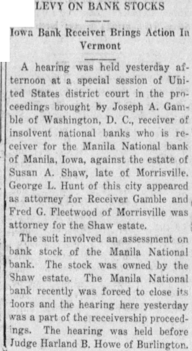 Named Manilla Bank Receiver. Manilla, Feb. Carl Foster, Guthrie Center, has appointed Na. tional bank, goes to take his work in Clare Heater, Foster, active charge of the Manilla stitution.