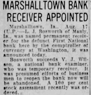 MARSHALLTOWN BANK RECEIVER APPOINTED