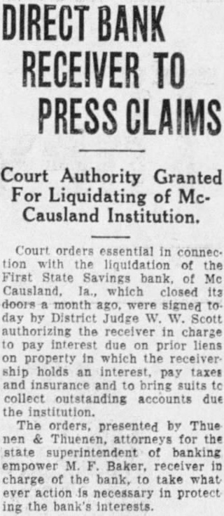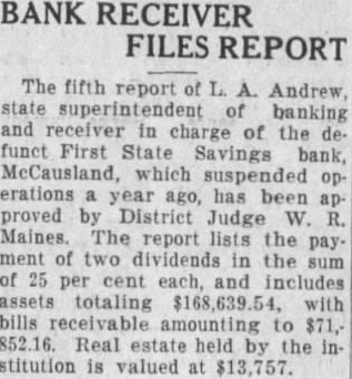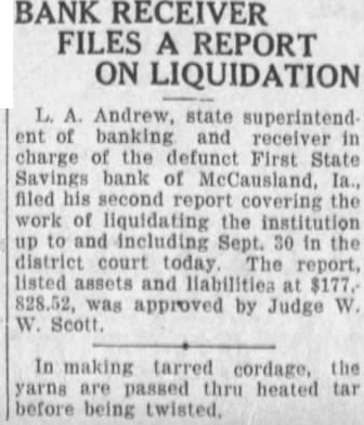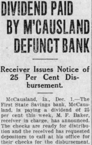 Eight of Iowa Institutions Make Final Payments to Depositors.