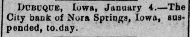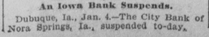DCBUQUE, Iowa, January 4.-The City bank of Nora Springs, Iowa, suspended, to.day.