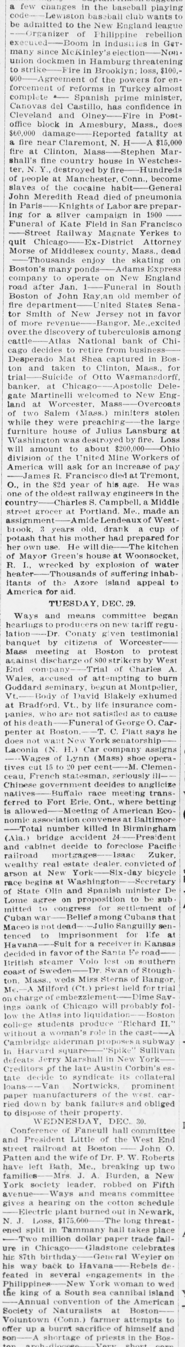 ANOTHER CHICAGO BANK CLOSES. THE ATLAS NATIONAL WILL RETIRE FROM BUSINESS-THE CLEARING HOUSE TO PAY DEPOSITORS IN FULL Chicago, Dec. 27.-The Atlas National Bank of Chicago has decided to retire from business, and the Clearing House Committee, at a special meeting to-night, decided that the associated banks of the city would advance the amount needed to pay its depositors in full. The amount required is about $600,000. The meeting was held at the home of Isaac G. Lombard. a member of the committee, about 11 o'clock to-night. The action of the committee is expressed in the following: The Atlas National Bank having decided to re. tire from business, the Clearing House Committee has made an examination of its affairs, and on its report the associated banks of the city have dethe amount needed to pay its dein as shown by its positors cided to advance full, books December into 26, 1896, without waiting to convert its assets cash. The amount required to be advanced will not exceed $600,000 The bank will not receive any deposits from date. Checks on it will be settled through the Clearing House, as usual. ISAAC G. LOMBARD, LYMAN J. GAGE, ORSON SMITH, C. J. BLAIR. E. G. KEITH Clearing House Committee. The officers of the Atlas National are: Prestdent, W. C. D. Grannis: vice-president. C. B. Farwell cashier, B. W. Stone: assistant cashier. W.S. Tillotson. The bank was organized in 1887, many of its incorporators being officers of the Union National Bank. Its capital stock is $700.000. Mr. Grannia has been president from the start. It is given out to-night that during the last few years newer and more pushing institutions have been taking business away from the Atlas, and that as a result of these defections over $2,500,000 in deposits have been withdrawn from the bank, most of it during the last six months. Mr. Grannis is an old man, and decided some time ago to go out of business. The bank is believed to be perfectly solvent. as the action of the Clearing House committee indicates. The report of the condition of the Atlas National at the close of business December 17 is as follows: Resources-Loans and discounts. United $1,941,742.59; overdrafts, $7,620 47; States and other bonds, $59,384; premium on bonds, $3,250; real estate, furniture and fixtures, $57,177 91; redemption fund, $2,250; cash and sight exchange, $820,638.52; a total of $2,892,063.39 Liabilities-Capital stock, $700,000; surplus fund, $140,000; undivided profits. $49,031 23; circulation. $42,620; bills payable, $100,000; deposits, $1,869,412; a total of $2,892,063.39. The director's of the bank are R. C. Clowry, vice-president of the Western Union Telegraph Company: C. B. Farwell, president of the J. V. Farwell Company: W. M. Van Bortwick, banker. Batavia, III.; John L. Norton, of Norton & Co., millers; W. C. D. Grannis, Charles Kern J. C. McMullin, H. L. Martsall, C. J. Connell and E. B. Meyers. Mr. Norton is a partner of Norton & Co., who yesterday assigned in this city.