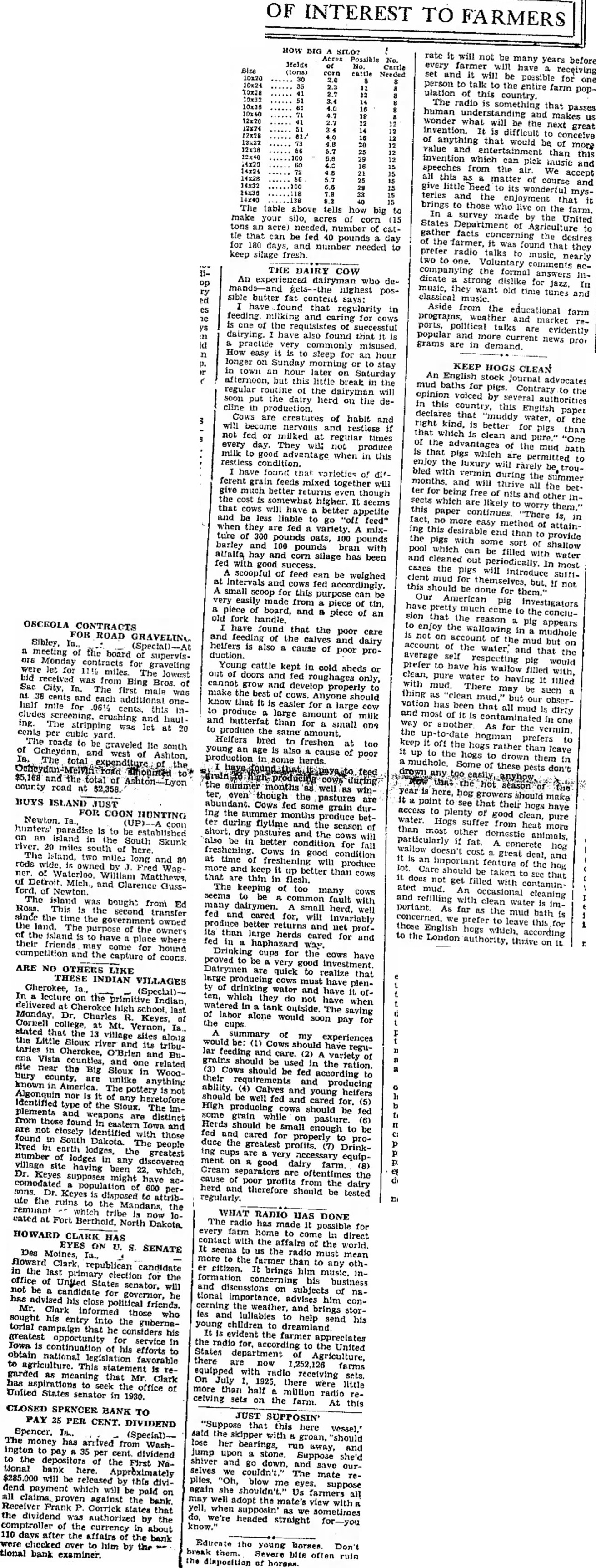 Educate the young horses. Don't break them. bite often ruin the disposition horses. rate will not be many years before every farmer will have receiving and will be possible for person to talk the entire farm population of this country. The radio something that passes human and makes wonder what will be the next great invention. difficult to conceive anything that would be more value and than this invention which can pick music speeches from the We accept all this matter of course and to its mysteries and the enjoyment that brings to those who live on the farm. In survey made by the United Department of Agriculture gather facts concerning desires the farmer, was found that they prefer radio talks to music, nearly to formal answers dicate strong dislike for jazz. music, they want old time tunes and music. Aside from the educational farm programs, weather and market ports, political talks evidently popular and more current news grams are in demand.