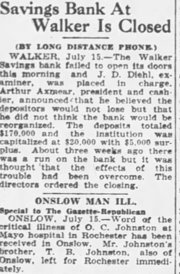 Fearing that the birds would betinue the fight for national prepared. come a menace to crops, Australian ness and against "supineness and officials sent a party of armed men, false doctrines." with orders to shoot to kill, in search The Walker, Ia., Savings bank of several English sparrows reported failed to open its doors yesterday to have escaped from the steamer and J. D. Diehl, examiner, was Lplaced in charge. Bank efficials say