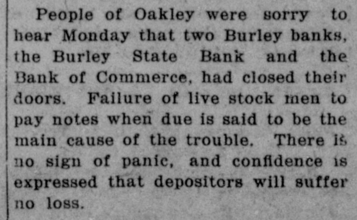 FURTHER BANK FAILURES IMPROBABLE Banks have failed at Delco, Burley and Idaho Falls, Idaho during the last ten days and this does not reveal anything especially new in business. All lines of business have been hard put to weather the financial stringency and banks have been frankly confessing to the people all the time, that they were running on as close margins as they thought was safe, endeavoring to make their loaning capacity do the greatest good that was possible. One of the banks that failed at Burley last spring, has reorzaniged and is doing business again; and in most cases of bank failures in Idaho this year, the depositors are protected, there being one notable exception at Pocatello. The failure at Idaho Falls last week, was the result of a long struggle to try to pull the bank thru, and while the other banks in Idaho Falls professed to sincerely regret the failure, yet it does not seem that they put their regret into action to try to save the bank. In a statement issued by the four surviving banks, they say that they had been helping the weaker bank in proportion- to their capital stock, and that the total amount of money loaned by the surviving bank to the state bank, the one that failed, was $23,500 or about $5800 apiece. They also admit that they received ample security for these loans, having received for the security two dollars worth of collateral for each dollar of the loan. It has been our understanding that bankers in these days, were glad to help one another in cases of trouble, but we do not regard this as an example of actually helping the state bank, when it needed help. If these other strong banks loaned it only $6000 apiece, they did not give it very much help when they took two dollars worth of collateral for every dollar's worth of the loan, they put themselves outside of the