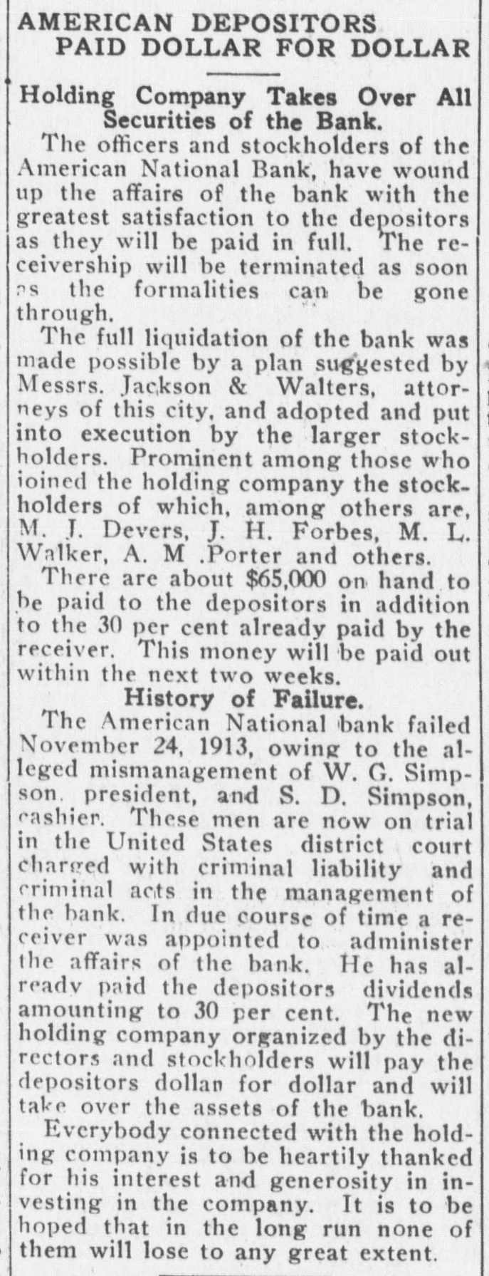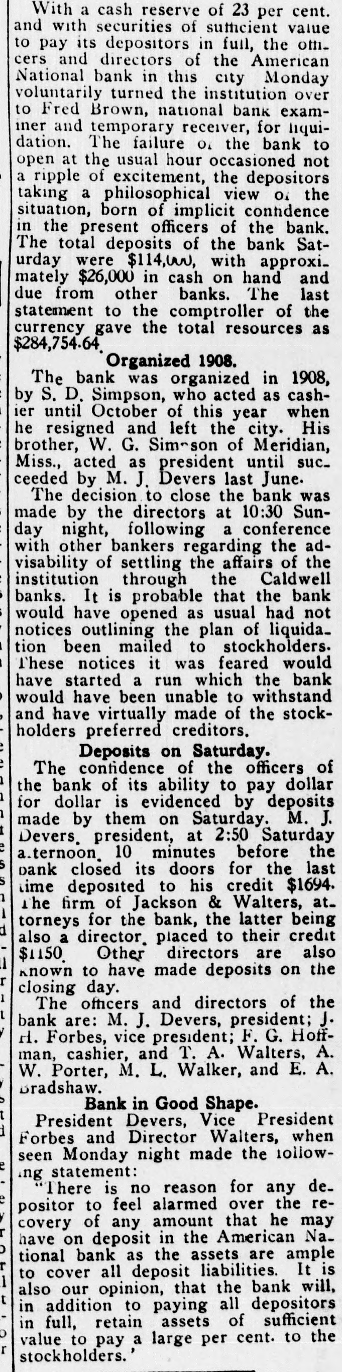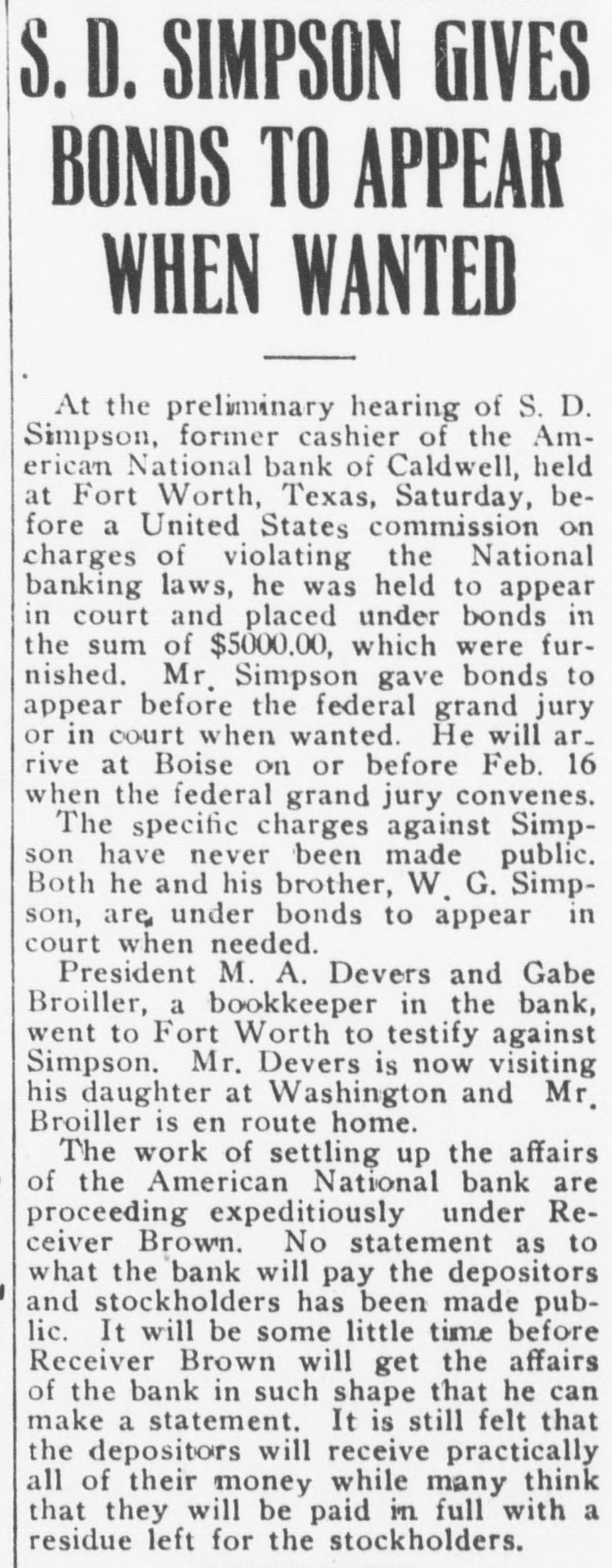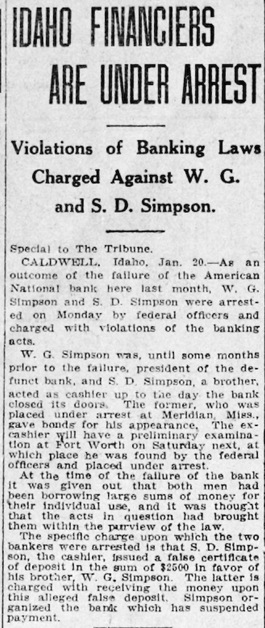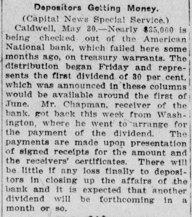 IN THE GEM STATE During 1913 there was raised in Idaho 8,000 carloads of potatoes, a farm product in which Idaho broke the world's record for a one-acre yield. It is predicted that before the close of 1914, citizens of Boise will have the pleasure of riding to and from Barber over an interurban trolley line. Up to July 1, 1913, $8,132,831 was expended by the United States gov. ernment on the Boise reclamation project, of which the Arrow Rock dam is the key. During the past year the school population in Idaho increased from 104,735 to 108,850, a net gain of 4,115 students. Over $1,800,000 was paid out to teachers in salaries.It is probable that the case of Franklin county against Bannock county will be reopened, in order to more fully determine the boundary line between the two counties. The value of the mineral and mental output of Idaho for the year is given as $22,807,575, an increase of $778,247 over 1912. and representing 353,942,500 pounds of lead, zinc, copper, silver and gold. During the past year Idaho fruit growers shipped 2,000 cars of fruit of the highest quality, netting producers $1,038,270 profit and added 5,000 acres of fruit lands to its rapidly growing area. In 1911 the Oregon Short Line brought 8,933 emigrants into southern Idaho. In 1912, the last year for which complete figures are at hand, the same company brought in 0,407 emigrants. Canyon county will rank second with the counties of Idaho and will be exceeded only by Ada county in the amount of property shown on the abstract of the personal assessment roll for 1913. When the last federal census was taken Idaho had within her borders 325,594 men, women and children. This was an increase in the ten years from 1900 of 101.3 per cent, a record made by but few of the states. Bert Mattingly Miller will probably be brought back to Boise from Vale. Ore., to answer to the charge of grand larceny. He is accused of stealing a team of horses from J. W. Willis, which were later sold in Oregon. The state now has in round numbers $10,000,000 in its permanent endowment funds derived from the sale of state lands. And the state still owns about 2,500,000 acres of land and timber of probably $12,000,000 in value. Two members have been added to the Pocatello city council. Eight months ago the Fifth ward was created. which gives two more on the municipal representative body, but the appointments were delayed until last week. M. E. Whitehead, charged with issuing a check on a bank in which he had no funds, pleading guilty as charged in district court at Caldwell and was sentenced to serve 60 days in the county jail. The check in question was for $20. Little Lost river irrigation project is to be revived. The state bond board will apply to the federal government for the segregation of the land in cluded in the project. This amounts to a little more than 20,000 acres in Blaine and Custer counties. The Idaho Falls postoffice was swamped one day last week by the receipt of 150 50-1b. sacks of flour from the Ucon mill for local delivery. The first delivery under the new regulation by the local office kept several drays busy to meet the demand. The public funds on deposit in the American National bank of Caldwell when it suspended business, December 23, and passed into the hands of a receiver for liquidation, are in every instance amply secured according to both public officials and officers of the bank. The board of inquiry held at Nampa to investigate the accident on the Idaho Northern branch when a motor car collided with the rear end of the regular train placed blame for the same wholly on Conductor F. A. Bonner and Brakeman J. F. Sewell of the train. Parties are negotiating for the construction at Pocatello of a 100-room hotel to cost not less than $100,000. The only arrangement now to be made is to induce the owners of the desired realty to take stock in the hotel company equal to the value of the lots in question. In 1914 the Oregon Short Line proposes to tap two of the richest agricultural sections in Idaho. One section lying between Idaho Falls and St. Anthony, a wonderfully rich agricultural district, is to be encircled by a belt line or loop 80 miles long to cost $1,500,000. President D. Worth Clark of the Wilson club has issued a call to all Democrats to gather in Pocatello on the evening of January 8 for the reg. ular Jackson day banquet and speechmaking. The gold strike recently made in the Allie mine at Gilmore, is said to exceed any strike that has ever been made in that camp. Reliable reports say that the strike was made at the depth of 300 feet, where a large vein of gold ore was encountered which is estimated to run from $9,000 to $10,000 per ton.