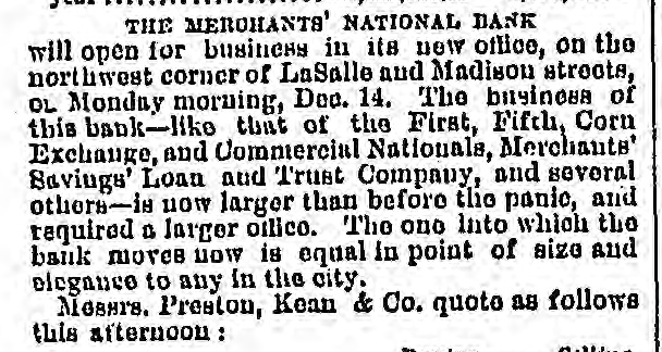 THE FINANCIAL SITUATION. Reports From Various Cities. : Bank Suspensions in Chicago. CHICAGO. September 26.-To-day has been one ofmost intense excitement in banking and business circles in this city; a day of wild rumors and suspended banks and other financial calamities Moet of this excitement has been cause ed by false rumors. The following banks have temporarily suspended: W. F. Coolbaugh Pres't; Second Union Note, National, Manufacturers' Cook NaBank of Commerce, National. Rumor Conunty tional, had it being this morning that uns are made the on banking German houses National of Preston, (Kenn & Co.. Bank, Corn Exchange National, City National, Merchants' National and Farmers but be Savings Merchants, Bank, they and proved Mechanics' to false. Each of these institutions has been doing business as the day. usnal during The officers of the National Bank of they have only closed for and it on Commerce, the day, say will depend the condition of affairs whether they open not. The banks are of en to-morrow keeping or doors other and National doing business as with of some few that are paying usual, only the exception email It is not banks have deposite. Savings suspended learned rumored that during that any the It has been a fearful run is being made on day. Chan Corn namerce, Exchange Bank, in and the excitement was 80 inten to require the interferance of the police, but it to Ibe false. proved There bank had out been a run for money on the 188 the greater part h ad been got rid 01 the banks had alr eady received $40,000 more than had been drawn cut, had not found it necessary vaults nor even the express of from open package money juet received and New York. All was quiet the bank tyment for provided p all than who in thought their money safer out the The bank as and while not court sets, vaults. they did had ample the excitement, they dia'n't tear a ran. An explanatory notice of the Union National made its solvent it'is periectly by president and states has that met with no loases by suspensions in the east and has in cash and paper maturing within sixty days sufficient to pay all liabilities to depositors stock without touching a dollar of its capital or Purplus. Bank officers of Merchants' Saving, Loan ank Trust Company say that all collections maturing in the next few and all remittances been but days exbausted expresses received its ability have to all demands it mitted to ar and de range meet equitably fully per with all poeitors. TERRE HAUTE, September 26.-A1 is financially here at d no runso The suspensions. quiet Prairie Clews City & Bank, t Co., correspondent of Henry New and Wooler, Co., of meets Indianapolin, York, promptly Webb & all OD drawn out pandemands Clews & Co, made its before deposite, the with ic overHaute indidrawn. and with Terre Wooler, Webb banks & Co. had vidual with but are as they deposits recognized Clews sound & and Co., there are no indications of a run. If one should occur on any bank all will close doors. OMAHA, September 26.-Omaha banks are suffering very little in con sequence of the panic, and are transacting business as nsual. LOUISVILLE, Sept. 26.-The money market is tight, but nothing serious is on hand is pressure apprehended. very light, The stock and the of pork could not have come in a more favorable time for the provision dealers, but unless money will gets curtailed easier the for business want of of packing be cash.