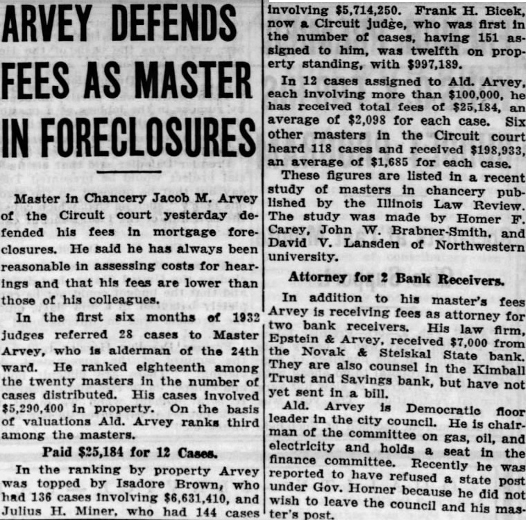 CLOSED BANKS ARE READY TO PAY DIVIDENDS Receivers Tell Condition of Six Others. Four closed banks are preparing to pay dividends depositors, State Auditor Oscar Nelson announced yesterday. the Binga State bank, 3452 South State street: the Ridgeway State bank, 3722 West Chicago the Novak Steiskal bank, 1817 South Loomis street, and the Central Oak Park State bank of Oak Park. The Binga bank, which closed July 81, 1930, will pay its first dividend to depositors. They receive checks by mail for $138,000, or approximately per cent deposit liabilities checks mailed by Morris, Practically all of the positors are people. Ridgeway Bank Dividend. A dividend 15 per cent, the Ridgeway State bank, which closed April Edward M. Olson, receiver, is to mail checks to 8,500 depositors. total of $429,000 due depositors. Clearing of court litigation during per of the Novak Steiskal bank. The was to two ago, but blocked by the intervention of The bank has cash against deposit claims and has addition bonds which can sold to insure the 15 per cent dividend. The Central Oak Park State bank awaiting court action to pay dividend per cent. suit for has been brought against the bank for rent. Master in Chancery Archie has found the bank owes $5,900. his tained be The receiver has against deposit of Other Report. State Auditor Nelson made public statements the conditions closed banks the The statements were prepared by receivers. Emil Wentslaff receiver for the State bank closed set the of assets and in version at $70,995 against creditors. He fixed during liquidation at and disbursements at His disbursements follow: Preferred claims paid $152,467 Receiver's salary 3,350 Clerical hire 4,287 expenses Auditor's closing bank. 1,485 payable 205,998 George W. Bloomgren, receiver for the Lincoln Trust and Savings bank, closed April 16, placed the which value assets against $3,247,002 due creditors. He fixed income during liquidation disbursements of His itemized disbursements follow: Preferred claims $31,167 Legal Clerical hire 4,943 closing 3,300 9,416 Charles Jenks, receiver for the Montrose and Savings bank. which May placed the book against due He fixed during liquidation of His itemized follow: 683 Receiver's salary Clerical 1,837 closing 667 Anditor's O. receiver for the Norman Second State bank, which closed the with losses of to $1,765 against due Inwas fixed $515,061 of His disbursements follow: Receiver's and expenses 666 salary the Clerical 3,198 770 Auditor's expenses closing bank. 1,050 payable met 280,379 229 in To John Carroll, receiver for the South Savings Bank and Trust which $4,295,587 the due Inagainst was set $25,359. His disbursements follow: Preferred claims paid and expenses Legal Clerical hire Miscellaneous expenses 2,567 Auditor's and Victor H. Munnecke, receiver for the State of Beverly Hills, which closed June placed the value of $1,026,147 liqui was with dis bursements of His follow: Prefererd claims paid Clerical 1,030 Auditor's closing bank payable auditor announced the appoint Edgar Olson receiver Marquette bank. 6314 887 the to be salary and time receiver Novak and bank to because Nelson the closed chain twelve Bain dicted all the banks. Irwin ceiver of the banks, the the banks and only of the paid the banks closed June