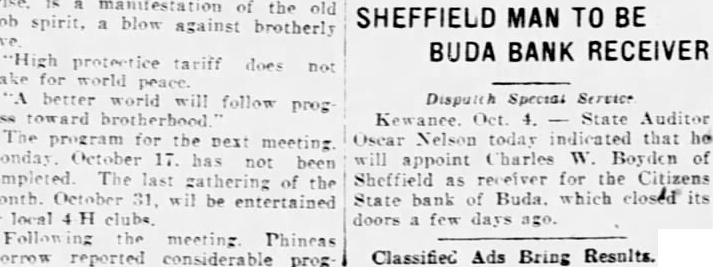 Sheffield, Jan. Zearing, of reau county, has announced that the claim of Macon township school against the Citizens State bank of Buda, $12,school funds the time the business Sept. 19, 1927. are preferred claims and must be paid out in full the receiver, Boyden of Sheffield, in of the funds of the bank. Soon after the closing of the bank. Attorney Rennick filed claim for Ross township treasurer, for the school preferred claim, based on olde rule of English common contending that the common was the Illinois and that school officers are only agencies of the state and that title to these funds was thus in the state, entitled to priority. In arguments before the master last August, Mr. Rennick appeared for the claimants, Spaulding and Carey Johnson for the bondsmen. and Trimble, other Princeton attorney. for Mr. Boyden, the receiver.