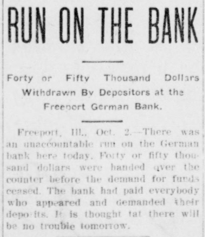 Control of the Wisconsin Central railroad reported about to be transferred to some eastern trunk line, possibly the Erie or Canadian Pacific. A run started on the German State bank at Freeport, Ill., following rumors that it was insolvent. All demands were met and the panic subsided.