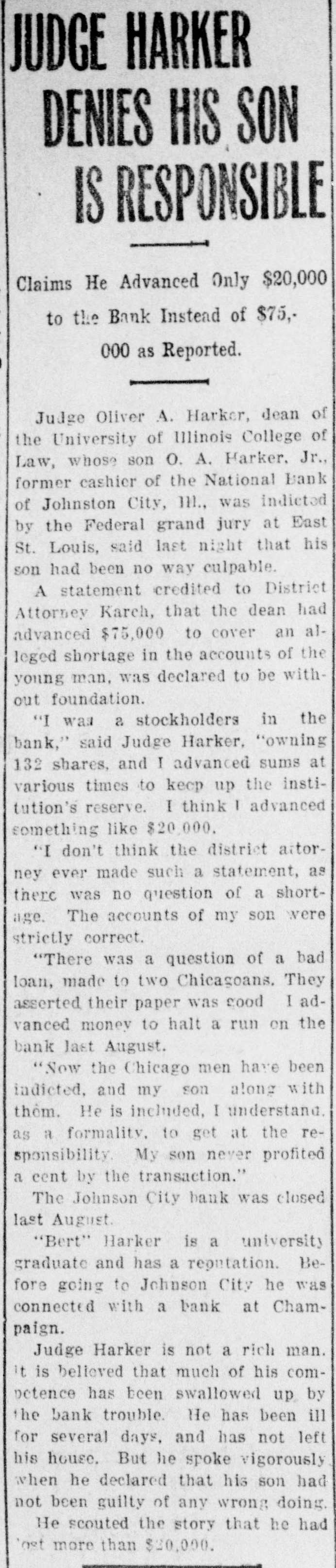 NATIONAL BANKS AND CAUSES OF THEIR FAILURE DOCUMENT ISSUED BY COMP. TROLLER OF CURRENCY SHOWS THIRTEEN INSTITUTIONS, BESIDES FIRST NATIONAL OF PENSACOLA, WENT TO WALL. The annual report of the comptroller of the currency to the third session of the sixty-third congress of the United States, issued December 7th. 1914, as document No. 1467, volume two, contains some interesting information concerning the failure of the First National and other banks banks during 1914. This report gives the name of the bank failing, the date of the appointment of receiver, which is the first act by the government after the failure of a bank, and also gives the causes for the failure as found by the government investigation. Below is given a list of the national banks that have failed during 1914, the date of appointment of receiver. and the cause assigned by the comptroller of the currency for the failure. Marion National Bank, Marion, Kansas, January, closed by run. First National Bank, Superior, Neb., January, fraudulent management. Barnesville National Bank, Barnesville, Minn., January, fraudulent management. First National Bank, Pensacola, Fla, January, injudicious banking. Americus National Bank, Americus, Ga., February, fraudulent management. First National Bank, Gallatin, Tenn., March, wrecked by assistant cashier. First National Bank, Wyatusing, Pa., March, depreciation of securities. First National Bank, London, Ky., April, wrecked by assistant cashier. First National Bank, Corning, Iowa, June, excessive loans to officers and directors. First National Bank, Johnson City, IIL, August, injudicious banking. First National Bank, Sutton, W. Va., August, defalcation of officers. American National Bank, Pensacola, Fla., September, closed by a run. United States National Bank, Centralia, Washington, September, defalcation of officers. First National Bank, West Elizabeth, Pa., October, injudicious banking. According to this report, the government recognizes thirty-two different causes for failures, some relating to defalcation, some for excessive loans to officers, some to fraudulent management. Others are listed as wrecked by the president, cashier, or some other officer, and some for other causes. It will be noted that in this report they do not charge fraud against either of the banks which failed in Pensacola, the comptroller's report accounting for the failure of the American National Bank, which re-opened shortly after it closed its doors, gives as the cause, "closed by a run," meaning a run of the depositors. In accounting for the failure of the First National Bank, the report attributes as the cause, "Injudiclous Banking," which is a criticism of judgment against the officers of the bank, rather than a suggestion of fraud or intentional wrong doing on their part.