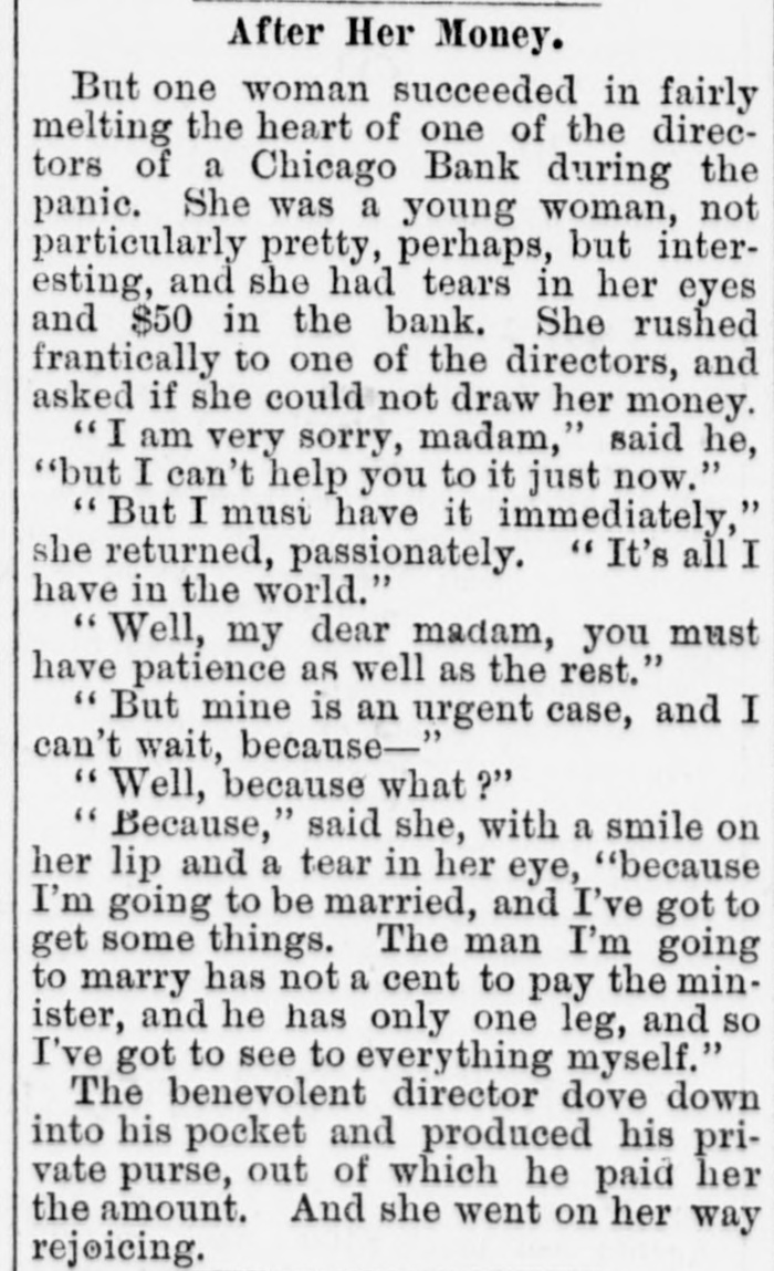 house ities had been compelled to guard prevent his acts of band of policemen to from an outraged violence with yellow-fever community. epidemic virulence of the of the The to a telegram 4th, had largely uncared for poorer classes at Memphis, according were increased dying Hundreds The interments of and the for want of attention. field alone, as dying day in the potter's had on that by the county undertaker, number reported reached thirty in number. The whole exceeded yellow fever deaths for the day and those of included only paupers the unforty. for whom This coffins had been obtained at dertakers' York dispatch of the 4th says that city, that A New of the Polaris survivors in on that n the steamship arrival City of Antwerp, the arrest of Capt. had been signalized by in the Navy Yard. Buddington day, Later and the his Tallapoosa confinement left for Washington with them. Orleans dispatch of the 5th says into the A New National Bank had gone New Orleans The house of Cavoroe had failed. from liquidation. A New York correspondent, recently, has reiterated writing Hall, the of Dundee, of Scotland, the poisoning of Professor Captain Bessels, story the Polaris, and indicated the person who rive of committed the expedition, the deed. as In the order case, to the araccording at the facts in to the dispatch Secretary of the of 6th, the Navy, had instituted another examination of York the survivors. dispatch of the 6th announces the old A New balloon, being Prof. that the "Graphic" rejuvenated, with affair revamped and had started for Donaldson and the his morning associates, of that Mr. day. Donald The Europe on an excellent one. Lunt and The Ford. ascension was by Messrs. from and floated son was accompanied balloon rose rapidly majestithe towards starting-point, the ocean, and Later, when a last dispatch seen was cally moving towards from Europe. New Haven, stating the had been received had reached Canaan, in that the balloon State of Connecticut a northeast corner of the had been caught in p. m., when it enough of the gas at 1:25 allowe gas-bag storm. Donaldson to enable them to bring the out, and near to escape the earth, when they all leaped the balloon escaped. dispatch of the 7th says that in had A Washington Commission, in session of recommende the Civil Service the appointment of Chief Clerk that E. o city, Graves, for Examiner-in-Chief. several years It boards would the Treasury, as to organize local the civil be his duty for candidates for had pointed service. of examination Subsequently the President him. of Equalization for the on State the Illinois The Board had completed of its all labors lands in the State was of The Illinois, estimated according value to their opinion, announces the 245,760,454. dispatch of the 7th suA suspension New York of Wylie, Knevals & Co., that, gar-dealers. Memphis telegram of the yellow 7th says fever had on than ever A that day, more cases of before. Over The 600 were the been developed under treatment. Among persons numbered forty-two. of the Domdeaths Rev. Father Carey, the interinican latter was priesthood. At Shreveport probably because less numerous, operate was less populated. "Liberal ments the abundant. material were The with town which had to become almost Conven- deat met The New York Elmira, State New York, on and the Committee tion appointed the peo8th, resolutions congratulating to oppose more ple adopted upon the growing civil disposition authority; reaffrming than any principles perversion set of fort at the Cincinnati Congressmen the denouncing so-called back pay, voted year ago; for and retain the returned it to the regretting and applauding those the who President should characAmerican ter Treasury; mistake the morality of the of the American to officially and disregard the honor sanction the bill, and the with name charging as the Republican party and demanding sponsibility of its passage, the highest importance repeal; regarding as of between the East that lines of improved, transportation so that no afforded; interest deand West complain be of the facilities influence of the great justly corrupting interestsare ploring the whereby agricultural of the country asserting should corporations crippled and the development that the eternal policy not be retarded; municipalities authorities; of the States with and by the Federal with being of the charging interfered the Administration disordered financial of sponsible for the country, recent and regarding as pay specie The Convention the duet paramount condition importance also return resolved to tribunal that the thanks ment. of all vindicated freemen the are right of local A trial State follows: which has freedom of the press. Secretary of jury and nominated as Nelson ticket State, was Diedrich Willers; General, Comptroller, Daniel Commis- Pratt K. Hopkins; Attorney H. Raines; Canal Syl H. Treasurer, James Thomas Jackson; Engineer, M. K. Platt. sioner, State Prison Inspector, the 8th says that the A Washington District of meeting that Sweet; Germans of held the dispatch on of the Columbia, they preceding would at had declared for office nicious whe pledged so-called evening, not support himself any to adhere temperance. man "to the perDean has the Third gress Congressional Benjamin by cause the Democrats of been District. of nominated 8th for Massa- Con- says Canada Southern that chusetts An all Indianapolia work Northern on dispatch the Indiana, of the had counties been Railroad, in Sheriffs of the several of through stopped by which the runs, taking prosession of the Third the According company's to National property. the Chicago Bank of Journal that city had 8th, the its doors again. 8th that says opened Louis dispatch of not the worked as satis A St. in that city had The Union suspended finances factorily as was on that anticipated. day and had decided the to Bank go into liquidation. telegram of the 8th says for the erection A Washington appointed commission Island, President had pr