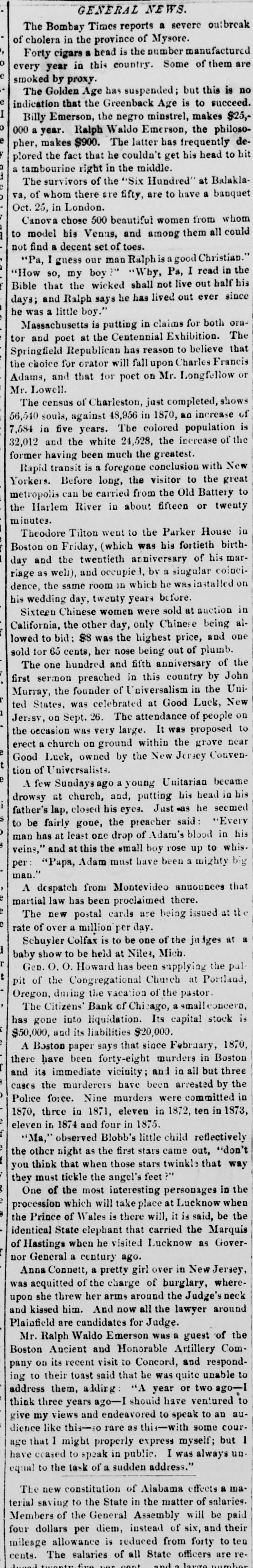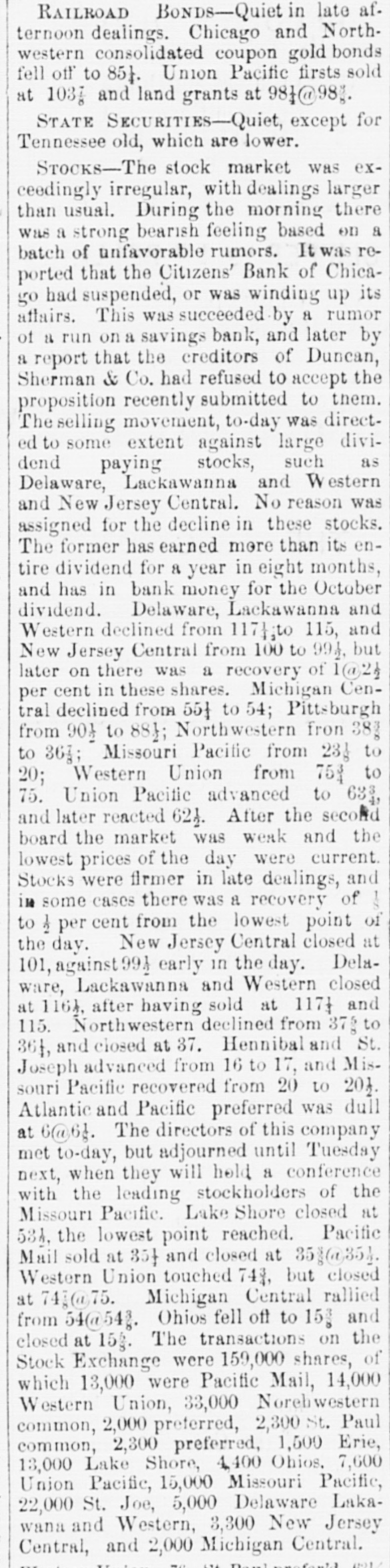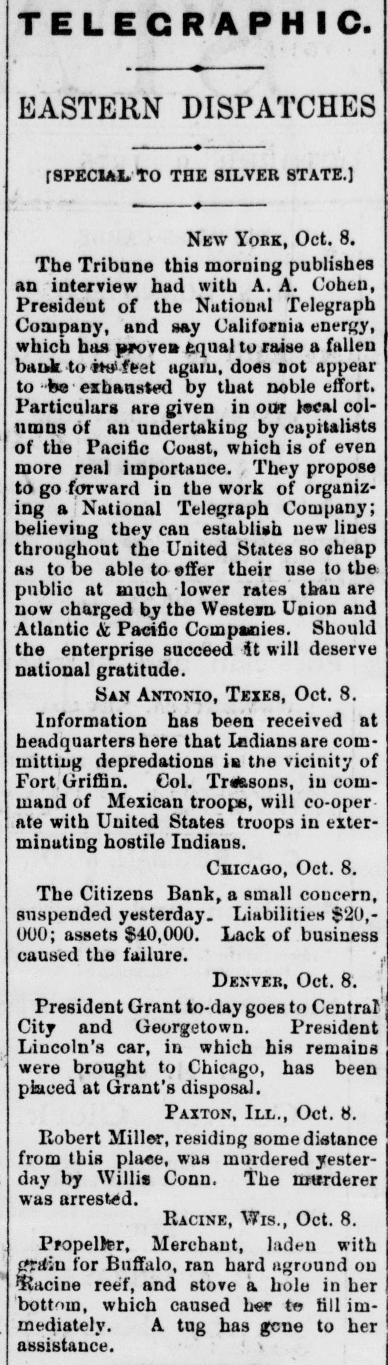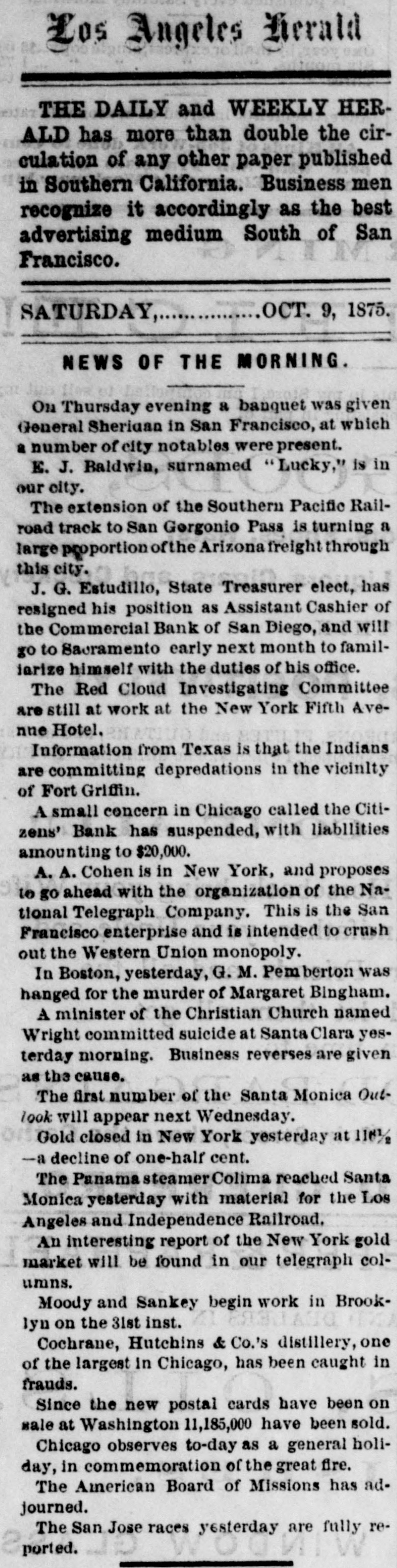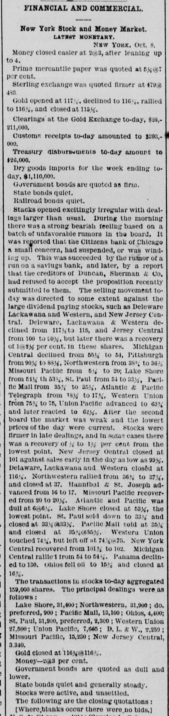 Europe, will be given. THE COURTS. SATURDAY'S PROCEEDINGS. Daniel J. Keefe filed 11 bill against his wife Mary, charging her with drunkenness and desertion, and asking for a divorce. Judge Williams granted decrees of divorce Saturday In the following enses: Elcanor J. from Gilbert A. Rogers, on the ground of drunkenness; Catherine Krauzer from Joseph Krauzer, on account of his cruelty; and Theodore W. Ross from Ruby Jane Ross, on the ground of desertion. UNITED STATES COURTS. Philip Goldberg commenced an action in trespass Saturday atrainst Louis Rindskopf, laying damages at $50,000. Julius Jonas began n like suit for a similar amount against the same party. John Garrett filed a bill against Chauncey T. and Minnie C. Bowen and n large number of others, to foreclose a mortgage for 85,000 on all that part of the N. W. fractional 14 of See. 22, 89, 14, described as follows: Commencing at n point on the west lino of said N. W. fractional section. 300 0-10 feet north of the 8. W corner of said N. W. fractional quarter section, running thonce along west line north 36 (cet, thence east parallel with the south line of the said fractional quarter section 170 5-10 feet, thence south 80 feet, thenco west 170 5-10 feet to the place of beginning. BANKRUPTCY MATTERS. Stephen W. Goodhue. a furniture-denler nt No. 27 North Jefferson street filed u voluntary petition Saturday to get rid of his debts. IIIA preferred debts are 3790.58, and the unSecured $6,389.50. The assets comprise n note for $220; stock of furniture, $1,553.05 (neumbered for $949: divers Items of personal property, 872: machincry held Holines, Pyott & Co. under distress warrant, $1,032: furniture, $500: also a house No. 5 Rucker street, on leased ground, worth $150; open accounts, $507.55; Insurance on property, 85,500. The petition was referred to Register lifbbard. R. E. Jenkins was appointed provisional Assignee, and an injunction was Issued to prevent any action under the distress warrant. A dividend meeting will be held Nov. 6 In the case of Erby & Barnes. R. E. Jenkins was appointed Assignee of S. A. McLelland and Edwin E. Sage. George W. Campbell was elected Assignee of Call & Kraft. Assignees will be chosen this morning for the estates of James H. Adams and Jane M. Bench. The first dividend meeting in the case of Thomas J. Birchler will be held this afternoon at 2o'clock. At o'clock this morning a number of claims against the State Insurance Company will como up for re-examination. The adjourned first-dividend meeting in the case of Ole G. Thompson is again set for to-day. SUPERIOR COURT IN BRIEF. George L. Clydesdale commenced a suit for 85,000 damages against James W. Scoville. John D. Jennings tiled a bill agulust Charles W., Clara C., and Susan A. Woodruff, George Scoville, Trustee, J. W. Boardman, W. B. Stnk, W. II. Tyler, F. P. Tyler, Ella M. Scribner, Lottie L. Crocker, William Crocker, Agnes R. Middicton, Thomas Middleton, and Warren O. Tyler, to forcelose 11 trust-deed for $10,000 on Lot 20, the north 20 feet of Lot 19, Lot 18, and the north half of Lot 16, all In Block 21, in Ja son and J. A. Gurley's subdivision of Blocks 24 to 28. inclusive, in the Assessors' division of the S. W. fractional quarter of Sec. 20, 33, 14. Julia Rigney commenced a suit for $5,000 damages rigulust the Town of Lake. Auna M. Schmitt and T. M. Bryant began a suit in trespass against Jennie S. Field, taying damages at $5,000. CIRCUIT COURT. T. C. Williams, Receiver of the Citizens' Bank, sucil Ilenry B. Thompson for $1,200. Sarah A. Allaby began n suit for $2,000 damages against the Chicago & Pacific Railroad Coinpany. THE CALL JUDGE DRUMMOND-General business. JUDGE BLODGETT-Set casesand general businese. JUDGE JAMESON-213, 215 to 233, inclusive. No. 211, Palmer VS. City, on trial. JUDGE MOORE-21, 27 and 23. No case on trial. JUDGE RODGERS-Set cases, term Nos. 1,031, Bargesa V8. Liebenstein, and 2,281, Haukey vs. Pennsylvania Company, also calendar Nos. 119 to 138, inclusive. No case on trial. Judan BOOTH-Set case, term No. 2,0S0 Maher vs. Chicago, Alton St. Louis Rattroad Company, and calendar Nos. 305 to 315, inclusive. No ense on trial. JUDGE McAll.ister-Sci cases, term Nos. 1,631, Brennan vs. Chicago Northwestern Rallway Company. and 549, Dietrich Vd. Chicago Scraper and Ditcher Company. No caso on trial. JUDGE FARWELL-General business. JUDGE WILLIAMB-General business. JUDGMENTS. UNITED STATES Circuit COUNT-JUDIE BLODO CTT-J. II. Wilcox et al. VS. Thomas T. Ellis, Sill, 878.05. SUPERIOR Tuckerman vs. S. S. Hayes, $013.04.-H. II. Shofeldt et al. vs. Bozaleel W. Phillips. S1. 556. -German National Bank vs. Charles 11. and A. M. Pfelfer, $1,300. -Same Yd. Charles 11. Pfelfer, $4,360.28 -A. A. McDonnell VA. John II. Gutches, 3181. 67. -Thomas Brown VH. William and James Cieland and John II. Kassing. $3,426.00. JUDGE JAMESON-Crane Brothers Manufacturing Company VS. Thomas Johnson, 3153.31.-Caleb Van Husan Vs. J. C. Sampson, $277.00.-Lucius . Willard et al. vs. Thoinas Hanlon and Peter Murphy, $200.40 David . Gage, usu City of Chicago, VI. Bank of Chicago, $1,300.83.-Jacob Shandlen ve. Adolph Dryfuen, $177.92 CURCUIT Co. vs. J. A. Martin, $323.