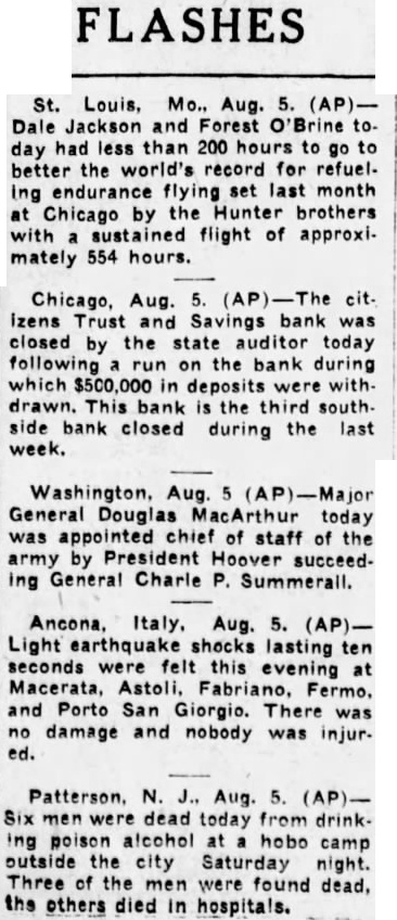 Washington, Aug. 5 General Douglas MacArthur today was appointed chief of staff of the army by President Hoover succeeding General Charle P. Summerall.