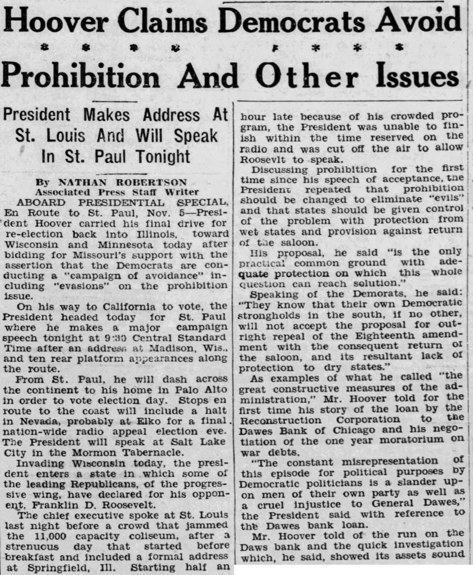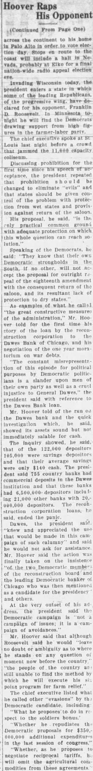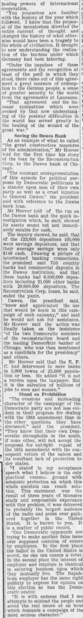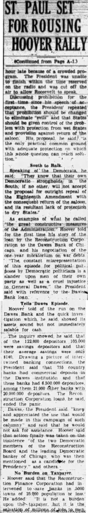 Politics As Congress Ended Sake of Appearance Democrats Had No Intention of Making Relief Bill More Than Reasonably Effective-Sullivan Explains Loan Made to the Dawes Bank. By MARK SULLIVAN. July politics the closing of Congress was aimed placid should be grateful there As no intention the than reasoneffective the complete result the Reconstruction Finance corporation has Three hundred to be loaned for direct billion and for to provide employpublic, for projects such bridges, and the like hundred and twenty for government public general of the defined, mainly to insurance companies railand solvency depends saving banks Loan to Key Points. cannot there when the had than to politics that practiced purpose making the campaign to appear the of conducted with Republicans and with to what Speaker Garthe "classes" as against the Every knows, that of banks, savand insurance companies the interest of depositors holders The function practicably points. would be utterly imloans individual" who There is to assume that publicity one apparently spoke for the Democratic candidate, Governor Roosevelt There is some appearance also that different Roosevelt favored yielding publicity. directors the Finance including the strongly pealed have the sion point was will and that relief rather than the bank The intend the to heavy fire already than to Charles bank suppose was merely favor Dawes other individual would conception the During the week had Chicago the biggest banks had taken 65 millions deposits. The one of the stopped run his address the line of to bank decided upon late Saturday June the the bankers and in conditions to this as 500 banks, big and throughout the middlebusiness the midnight telephone appeal and Democratic the corporation united in the deto The attacks this and on the generally merely the politics the and solid fact that in all has been put averting preventing closand in general bringing suspicion partisanship corporation's loans should unPresident Congress to require the directors evenly distributed between the intention give the headship of to Democrat.