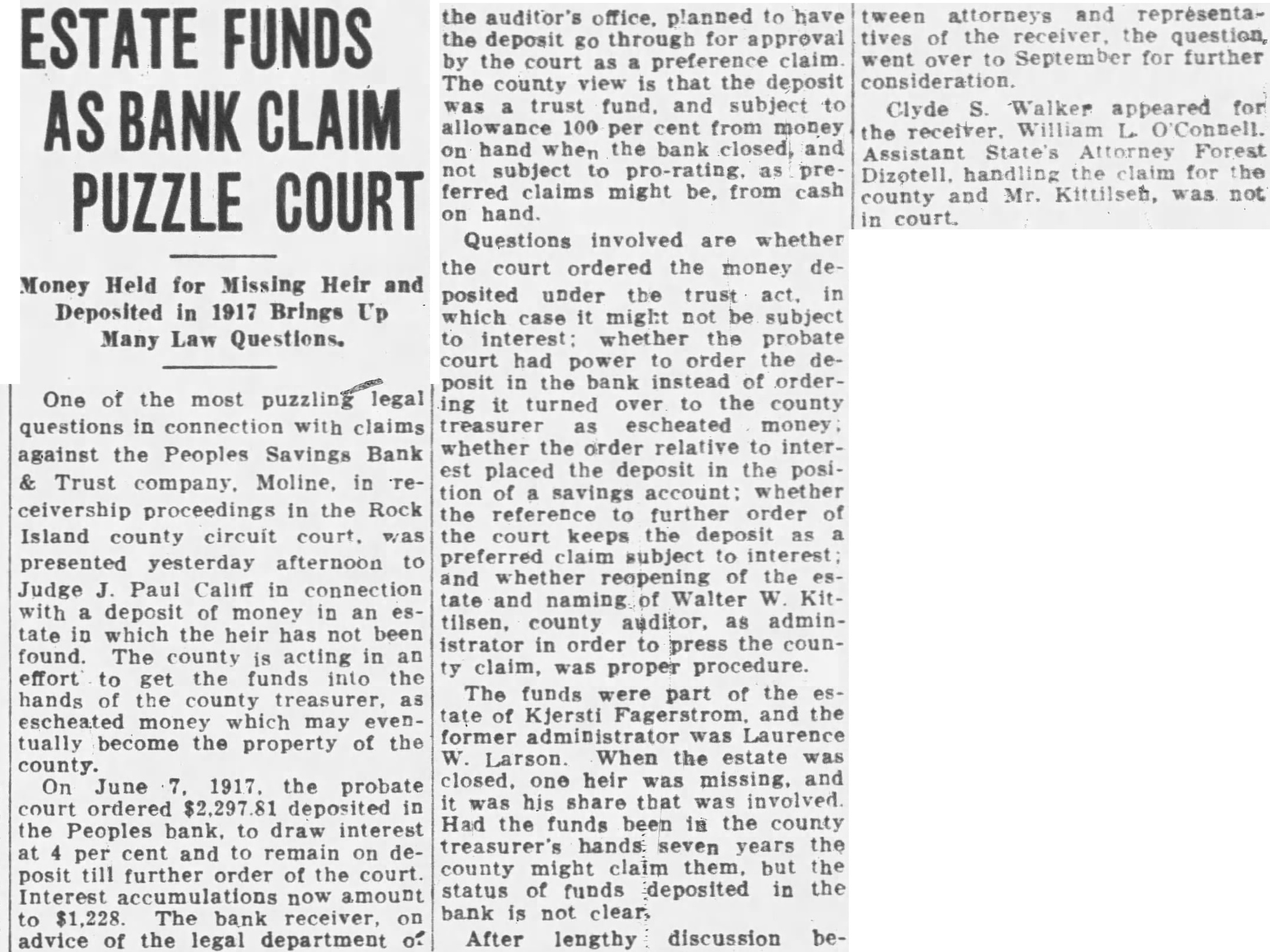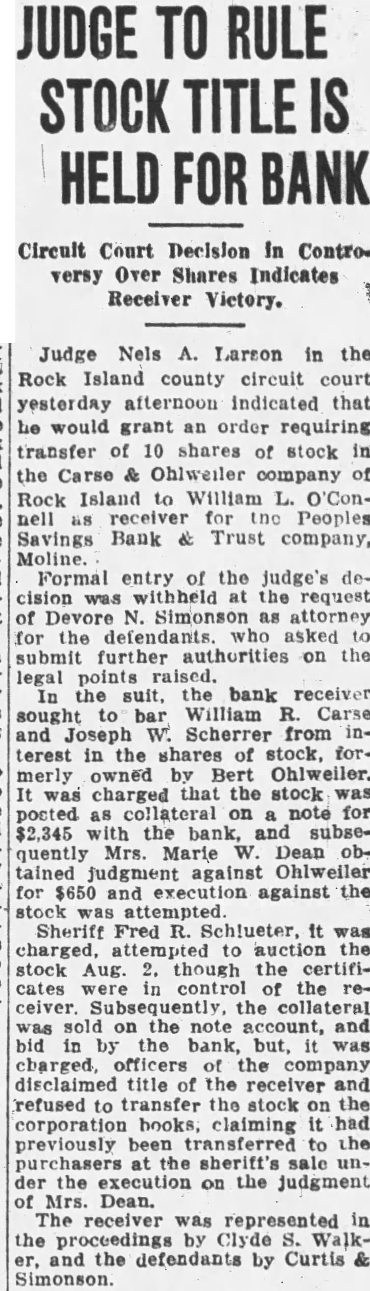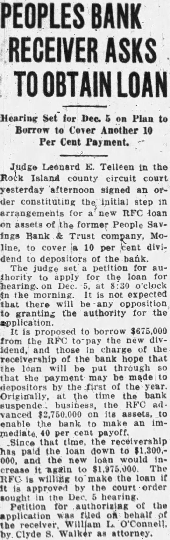 Be to City Hopes to Meet March Payroll on Officials Discuss Plan Issuing Tax Warrants to Meet Obligations. Plans whereby the city of Moline hopes to be able to meet its payroll and other financial obligations on March were in the office of Mayor John Huey this the mayor, of morning by the committee of the city council, the city clerk and James Johnston, former city attorney, and legal adviser the city. The mayor stated that according to present plans the city probably will issue city anticipation warrants for amount sufficient month's salaries and bills pay now due and an additional two salaries and bills which will due March Details of the plan to be pursued have not been worked out, the mayor stated. The city favors this plan rather than the suance of scrip. Warrants for an amount approximating probably will be sued the plan now being considered is adopted. The now owes $14,000 in salaries to and will owe another $7000 by March or total of in salaries. Other bills now due and which will be due March will bring the total amount of indebtedness up approximately $30,000, the mayor said. The city was unable to meet its payroll and bills January 16, the date the banking holiday went into effect. was also impossible for the city to meet its payroll during the remainder of the period the banking holiday was in effect. On January the city had deposit in the People's Savings Bank and Trust company of Moline $137, The city also the bank for tax issued during the fiscal The deposit was in the special fund and the owed was by the general fund from which practically salaries are paid. According to city officials, the bank deducted the owed by the city from the general fund, which was from the posit in the special fund which left city balance of Forty percent of the which the payment immediately all depositors, will the city with total balance of Whether the city will sign waiver to obtain dollar for doloffset the owed the bank will be determined at the next meeting of the city council.
