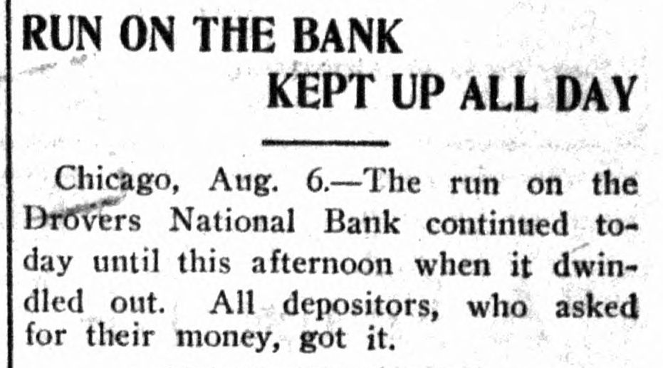 RUN ON THE BANK KEPT UP ALL DAY Chicago, Aug. 6.-The run on the Drovers National Bank continued today until this afternoon when it dwindled out. All depositors, who asked for their money, got it.