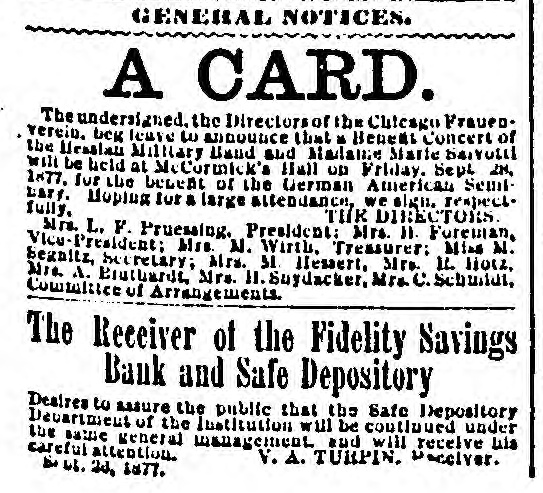 The expected bill to enforce the liability of the stockholders of the Fidelity Savings Bank and Bafe Depository, and to prevent suits by depositors against them, was filed yesterday by Dr. Turpin, the Receiver, and W. II. Potter, a depositor to the extent of $45, against John C. Ilaines, C. J. Haines, Jared Gage, George M. Gage, Frank J. Gage, Henry II. and George A. Shufeldt, Frank B. Tobey, E. 8. Williams, A. B. Merrill, Frank Merrlil, Cora Merrill, E. M. Haines, Melinda G. Haines, Fannie C. Haines, Edeline Bradway. Jeremiah Twohey, John R. Winterbotham, Emina M. Speth, E. J. Walsh, Mary II. Teed. Elizabeth Adams, Annie M. Brown, Helen M. Smith, Carrie W. Bali, J. E., Rood, Joseph Kuncera, John Bernhardt, W. L. Katzurn, J. II. Cruver, Elizabeth M. Price, George Wincock, G. W. Miller, J. A. Cameron, C. 8. Thornton, G. W. May, aud Amonetta S. Bickford. The Receiver sets out first his appointment as Receiver, the organization of the bank anıl its continuance in business until Sept. 24, when it became insolvent. From his examination he has ascertained already that the as-acts are less than the liabilitios by at least $200,-000, the amount of the capital stock. The liability of the stockholders, as he is informed, is to the depositors pro rata, and it is an asset of the bank, to be distributed according to the principles of equity, and is irrespective of the amount and value of the assets of the corpora-Hon. A large number of the creditors of the bank have begun suits against these stockholders, and there is great danger they will obtain judginents and secura priority of payment and Indquitable advantage. The Hability of the stockholders can only be established in a court of equity which may marshal the assets and determine the date of deposits, the time and good faith of trans-fers of stock, secure to the depositors as an ag-gregate body their rights, and provent the pref-erence of one depositor over another by his action at law.
