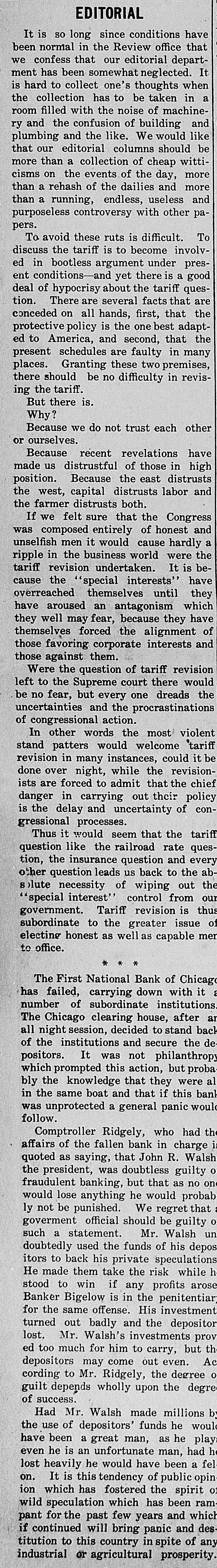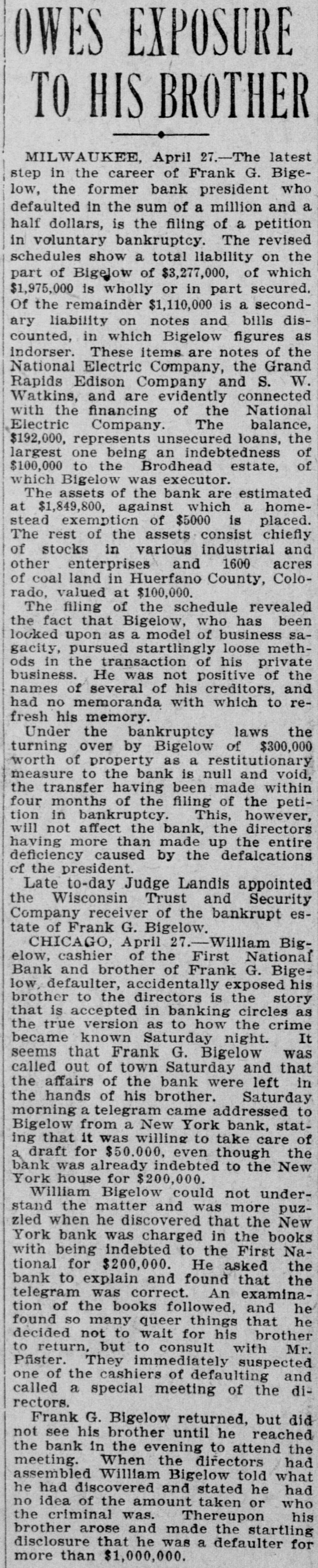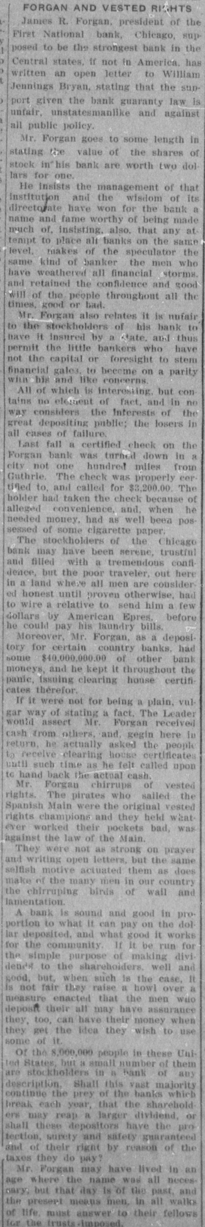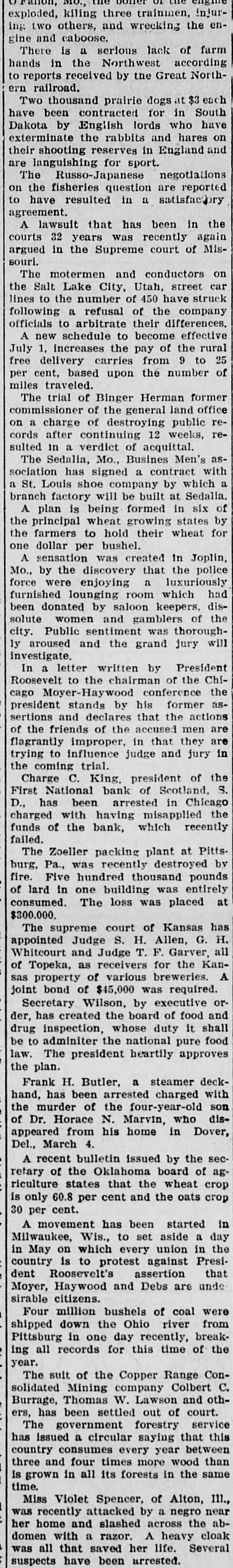 Rush of Depositors Starts Early-Doors and Kept Open Until Eight O'Clock DeClosed Until All Those Who i manded Not Their Money Got It-Over [ 3,000 Withdrawn Accounts-Rumors Another Peace Effort. , ) of Aug. 5.-The strike in lost the e Chicago, houses was practically ate packing to-day in the excitement and sight of a run on the Drovers Trust yards tending bank, one of the stock Savings The rush of the depositors beinstitutions. bank started early to-day that one to the of an unfounded rumor had cause packers' representatives instituof the his money from the bank was withdrawn reports that the as tion and used by the packing companies new embeing adjunct in paying off their places of an who have taken the of ployes etrikers. All day long hundreds whom had the depositors, most of stood excited small accounts in the bank, When 1 only line to withdraw their deposits. there a in time came this afternoon waitclosing were at least a thousand officials persons of the their money. The the emergening for determined to meet and the place bank, called in extra tellers every depositor D cy, was kept open himself until at the window winwho presented The paying until V had been satisfied. bank were kept Nearly open two dows of 8 o'clock the to-night. the last man in before that his deposit in had been ceased line hours after paid time had coming. 3,000 full and fresh arrivals upwards of t is estimated that withdrew their dedepositors day. When t posits its height the the a It at during called the and with bank withdrew the Com- run was of its deposit and a like r mercial $100,000 National bank National bank, amount from the First any possibility ob- of the in order bank to being prevent unable to meet its to meet S 5 ligations. "We have plenty of said money Vice President had a any kind A. of Tilden, a run," after night. the bank "We had K William closed for the vaults, and bebeen $300,000 in our taken own from the down e sides over the $200,000 received offers of bank asr town banks have the First National bank d sistance Chicago, from the National Standard Park Trust S of York and the of these offers d bank of New be of accepted, New York. as we None Our have windows on hand will all e will the money we until need. all of the depositors be kept open but from the appearance instiof ended to-night." on now are things satisfied, I think the run on our strike o 1 tution Many of the workmen have deposits in d e in the packing Trust plants and Savings persons bank, who the Drovers' majority of the to-day to g but about the small their money the stock h mand gathered the business place were in who are trades- yards de- not e men doing and working connected people in a labor r district have not been plants. The of a capacity and with union, the packing the members $2,000 on deS in Teamsters' on strike, has effort was d this which are the bank, but money no to-day, t d posit to withdraw the union declaring is, made the secretary of will remain where it h that the money is as solid as a rock. conference 1 as the bank of another peace strikers were h Rumors the packers and appearance d. o between occasioned o-night exchange by the of John M. at the Live and Stock M. E. Montana Milner, president Round- dro1 Boardman secretary of the organization of 2 3 and association, an nearly 250,000 head of Up which sends each year. cattle vers to the yards yards officials knowl- and 2 that stood Althoupepresentatives the stock move, denied it is under- try to 3 packers' edge of any the peace Montana men will 4 by to-night 1 packers it increase arrange In a statement a conference. is given asserted out in that to-day's there 3 The the a considerable of yesterday. over declared was business to-night that would be that "active." the the 1 2 When union, the strike strikers from President now on returned Donnelly, to Chicago of west he from a trip a The to-day Butchers' immediately went through into leaders conference here. other labor day and when with the lasted nearly said all that another when meeting up it was to-morrow, of the it broke would be held calling a strike city e will be taken. meeting action truck in regard drivers to throughout the