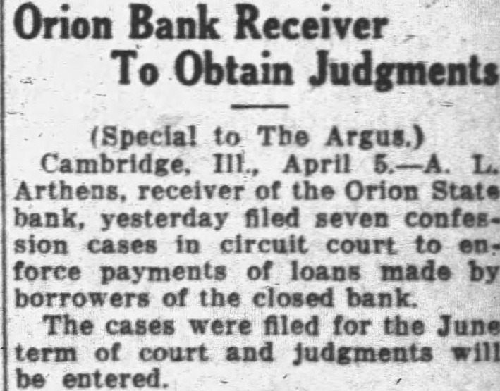 (Special to The Argus.) Orion, March State Bank of Orion reopened this ing, without restrictions, having been observing state and national banking holiday since March Walker W. Kerr. cashier, receivcommunication from Edward Barrett, auditor of public accounts, at midnight last night, authorizing the institution to sume business this morning. would have reopened some time ago but for the delay sioned getting from the state auditor's office, which has been flooded with work since the state holiday clared,' one of the bank's officials Henry county now has five banks operating. Besides the Orion bank, the two national institutions Geneseo and the state banks at and Osco are open.