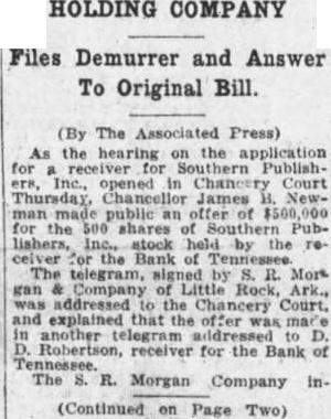 HOLDING COMPANY Files Demurrer and Answer To Original Bill. (By The Associated As the hearing the for James man public of the lishers, held by the the Bank of of Little Ark., the Chancery and that the receiver for the Bank Page Two)