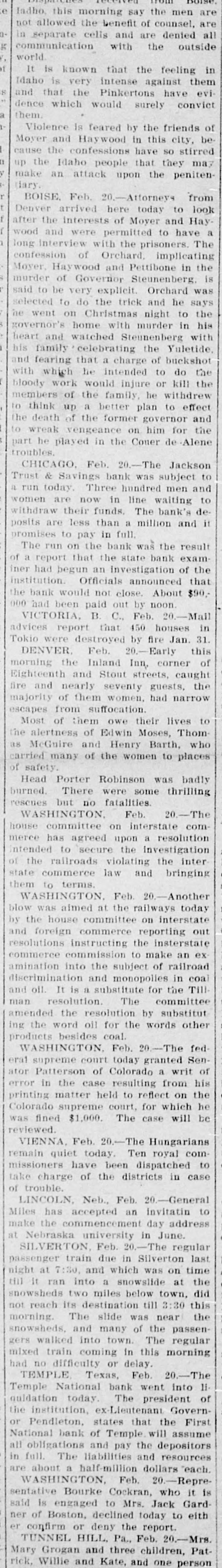 Engineer Willard and Brakeman Sheahan were killed and Fireman Rogers was injured in a head-on collision of two Iowa Central freights near Eldora, Ia.