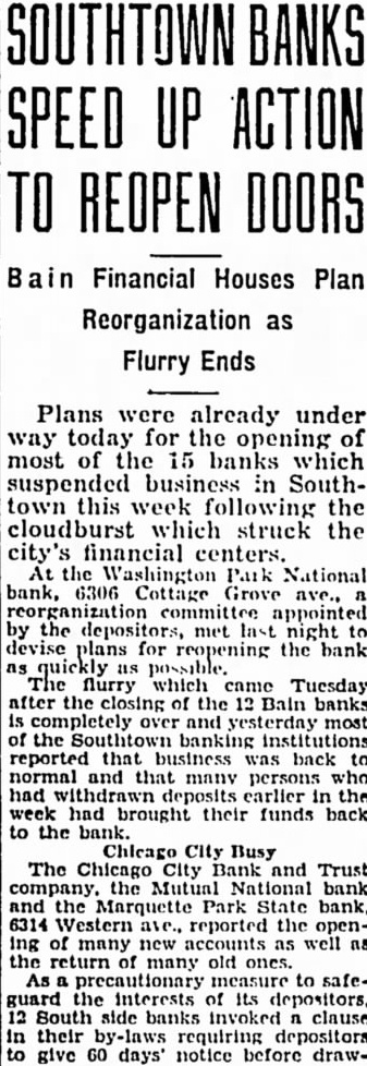 Bank Closes Its Doors. brother, The auditor announced the closing last night of the Marquette Park bank, 6314 South Western avenue, an institution with capital, North 000 surplus and in deposit liabilities. Depletion of cash and Sunday secondary were ascribed as reasons for the closing. The bank The had in estate loans. Brietzke was president William Michael Maizel, original of old, 420 Bain in the banking business, county director.