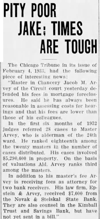 CLOSED BANKS ARE READY TO PAY DIVIDENDS Receivers Tell Condition of Six Others. Four closed banks are preparing to pay dividends depositors, State Auditor Oscar Nelson announced yesterday. the Binga State bank, 3452 South State street: the Ridgeway State bank, 3722 West Chicago the Novak Steiskal bank, 1817 South Loomis street, and the Central Oak Park State bank of Oak Park. The Binga bank, which closed July 81, 1930, will pay its first dividend to depositors. They receive checks by mail for $138,000, or approximately per cent deposit liabilities checks mailed by Morris, Practically all of the positors are people. Ridgeway Bank Dividend. A dividend 15 per cent, the Ridgeway State bank, which closed April Edward M. Olson, receiver, is to mail checks to 8,500 depositors. total of $429,000 due depositors. Clearing of court litigation during per of the Novak Steiskal bank. The was to two ago, but blocked by the intervention of The bank has cash against deposit claims and has addition bonds which can sold to insure the 15 per cent dividend. The Central Oak Park State bank awaiting court action to pay dividend per cent. suit for has been brought against the bank for rent. Master in Chancery Archie has found the bank owes $5,900. his tained be The receiver has against deposit of Other Report. State Auditor Nelson made public statements the conditions closed banks the The statements were prepared by receivers. Emil Wentslaff receiver for the State bank closed set the of assets and in version at $70,995 against creditors. He fixed during liquidation at and disbursements at His disbursements follow: Preferred claims paid $152,467 Receiver's salary 3,350 Clerical hire 4,287 expenses Auditor's closing bank. 1,485 payable 205,998 George W. Bloomgren, receiver for the Lincoln Trust and Savings bank, closed April 16, placed the which value assets against $3,247,002 due creditors. He fixed income during liquidation disbursements of His itemized disbursements follow: Preferred claims $31,167 Legal Clerical hire 4,943 closing 3,300 9,416 Charles Jenks, receiver for the Montrose and Savings bank. which May placed the book against due He fixed during liquidation of His itemized follow: 683 Receiver's salary Clerical 1,837 closing 667 Anditor's O. receiver for the Norman Second State bank, which closed the with losses of to $1,765 against due Inwas fixed $515,061 of His disbursements follow: Receiver's and expenses 666 salary the Clerical 3,198 770 Auditor's expenses closing bank. 1,050 payable met 280,379 229 in To John Carroll, receiver for the South Savings Bank and Trust which $4,295,587 the due Inagainst was set $25,359. His disbursements follow: Preferred claims paid and expenses Legal Clerical hire Miscellaneous expenses 2,567 Auditor's and Victor H. Munnecke, receiver for the State of Beverly Hills, which closed June placed the value of $1,026,147 liqui was with dis bursements of His follow: Prefererd claims paid Clerical 1,030 Auditor's closing bank payable auditor announced the appoint Edgar Olson receiver Marquette bank. 6314 887 the to be salary and time receiver Novak and bank to because Nelson the closed chain twelve Bain dicted all the banks. Irwin ceiver of the banks, the the banks and only of the paid the banks closed June
