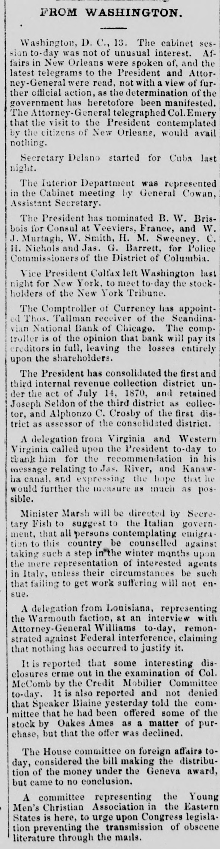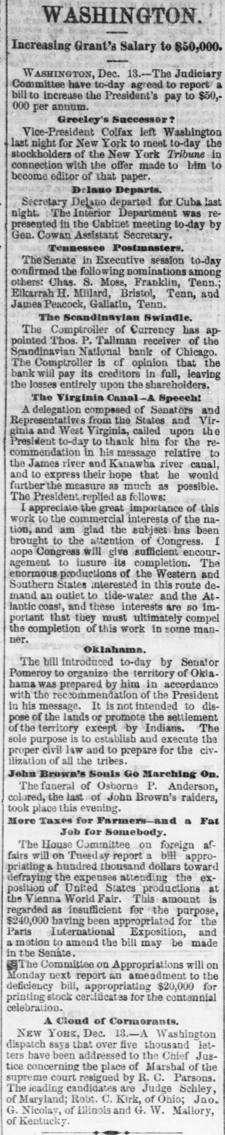 N. H. BRAINARD, postmaster at Iowa City, is charged, on the affidavit of one of his clerks, with perjury, theft, and embezzlement. He has had the office since June last.