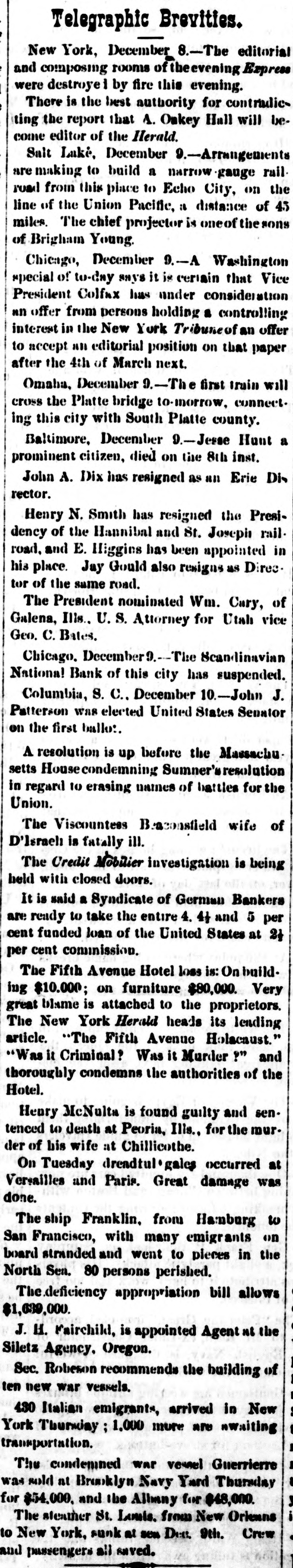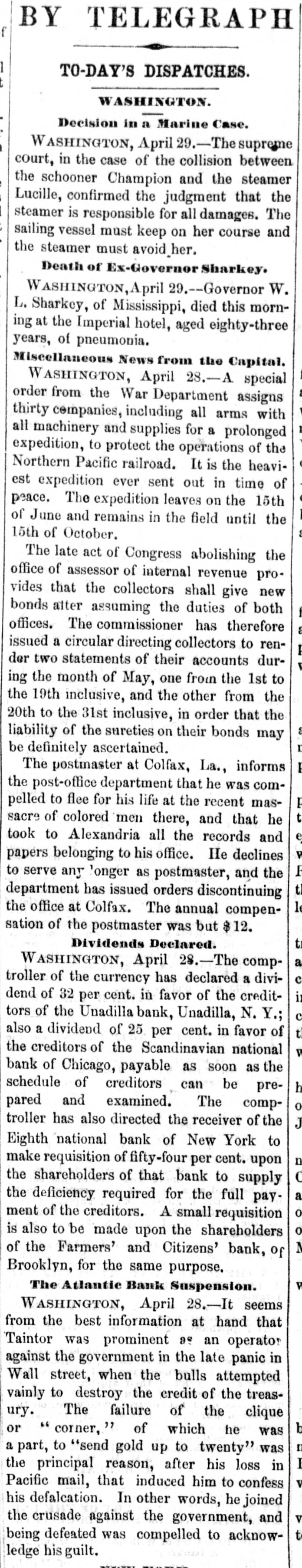 tonio, Lower California. A steamship has gone to relieve the passengers. The Sacramento will probably prove a total loss.
