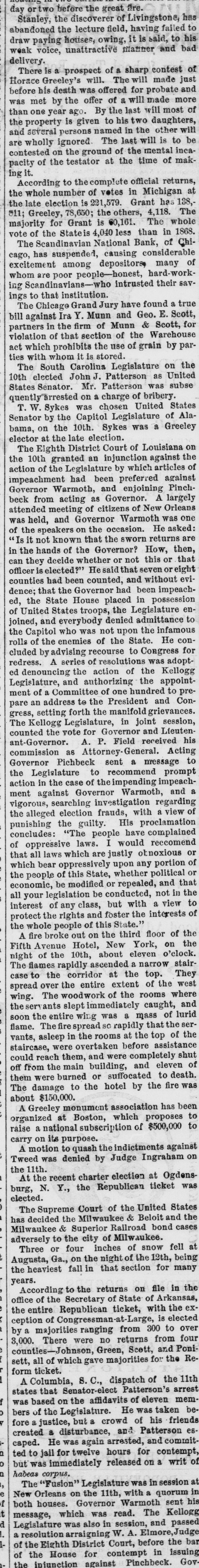 As Englishman named Wm. Taylor was found on the bridge at Marinette, Wis., Monday morning, with his skull fractured near the temple. The Coroner's jury gave a verdict of death by assault with a deadly instrument in the hands of some person or persons unknown