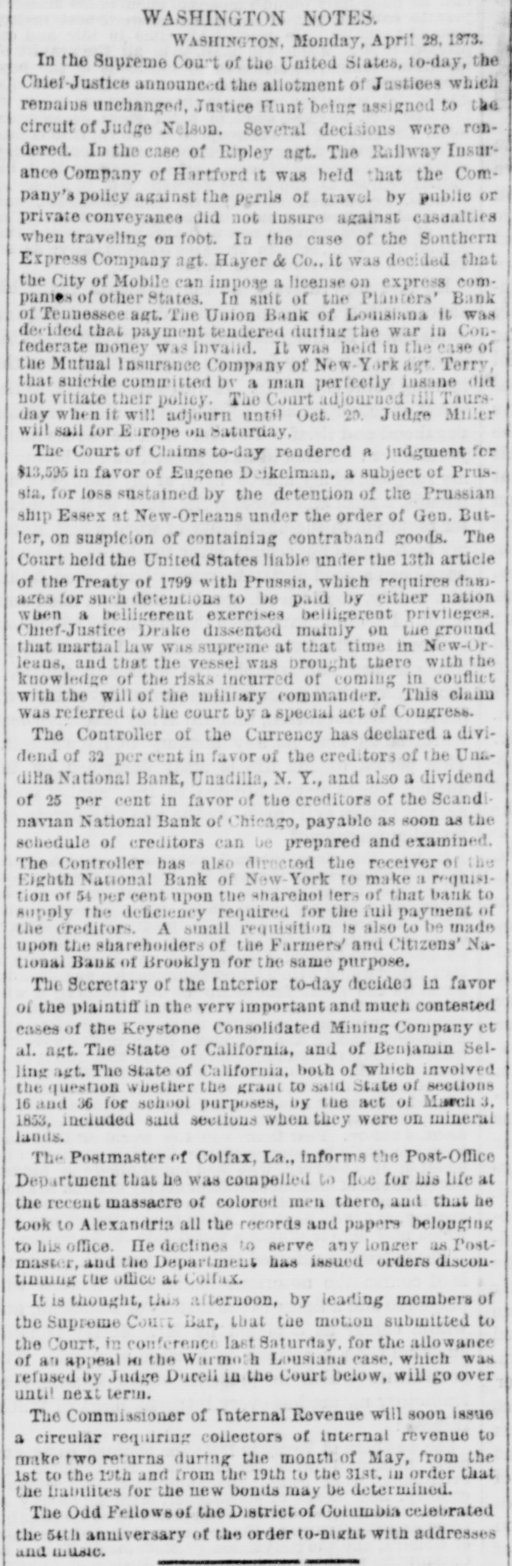 CHAS. JOHNSON, the colored wife-slayer, was hung in Washington on Tuesday.