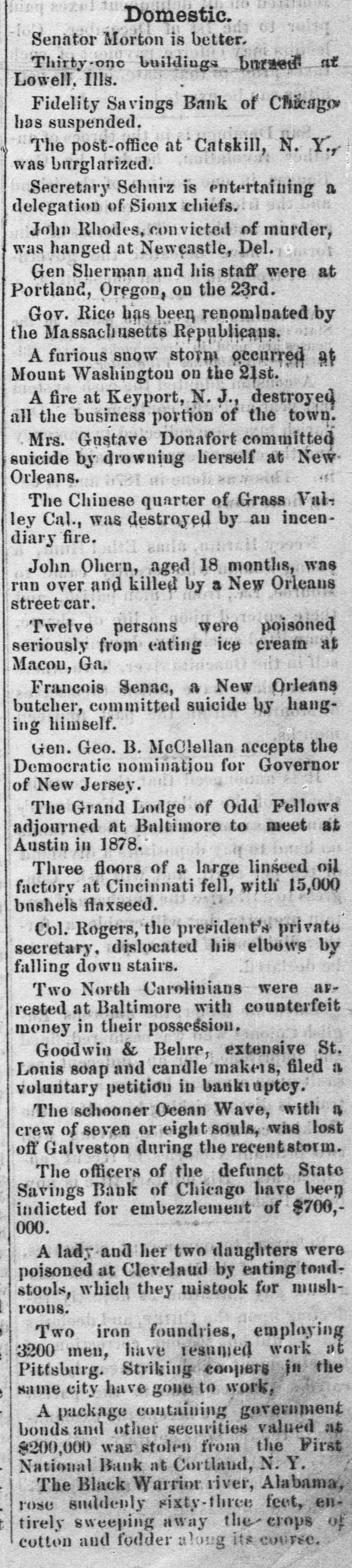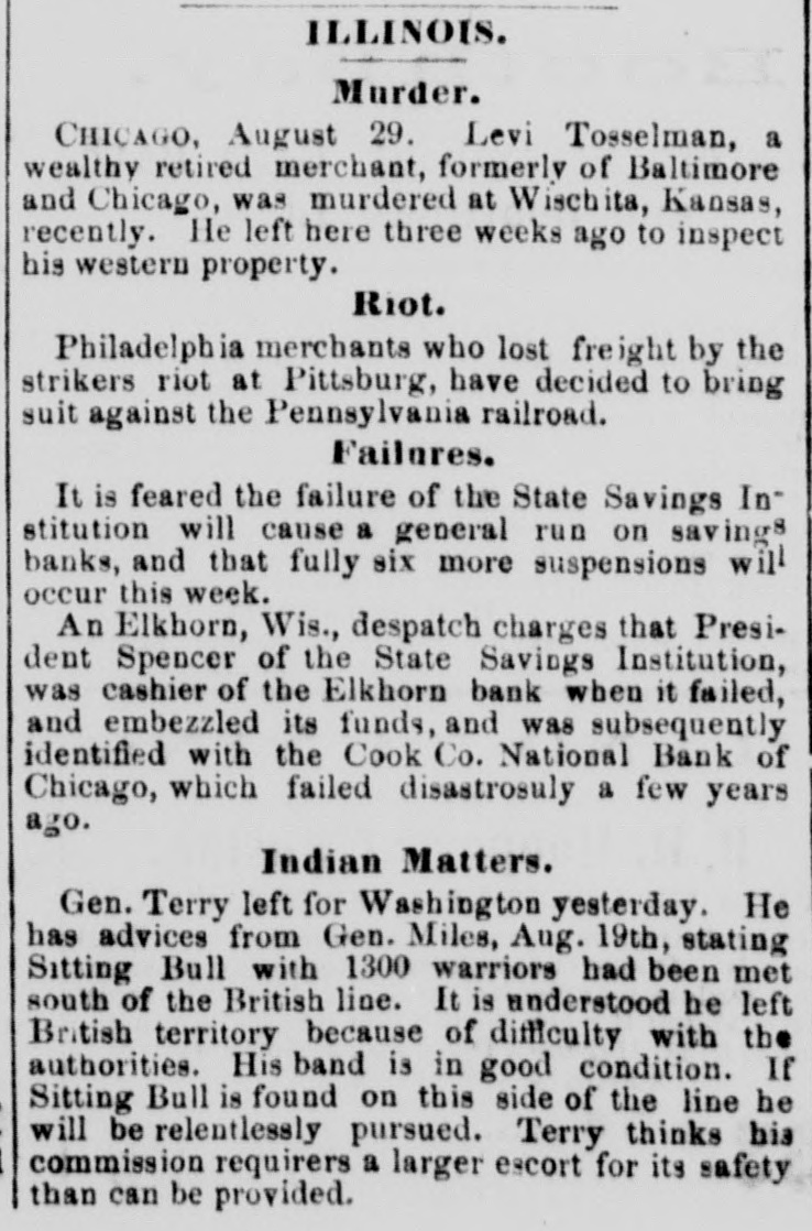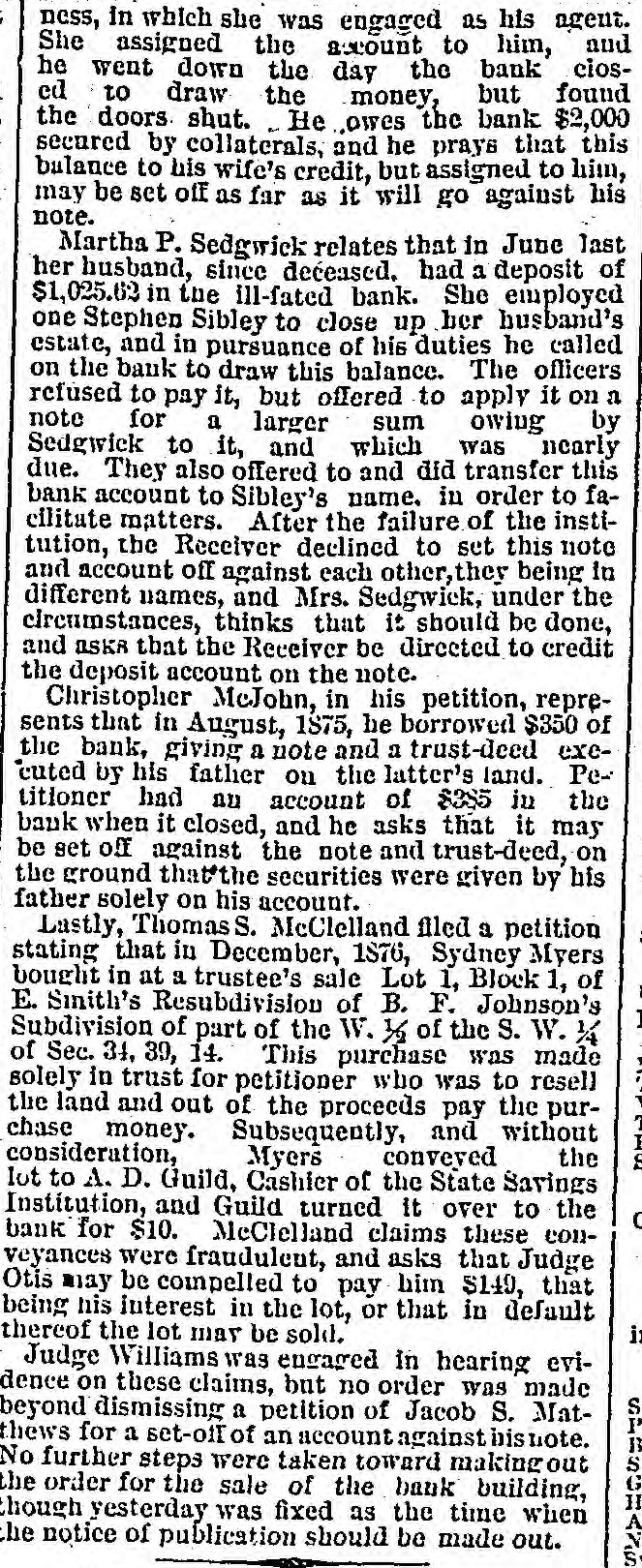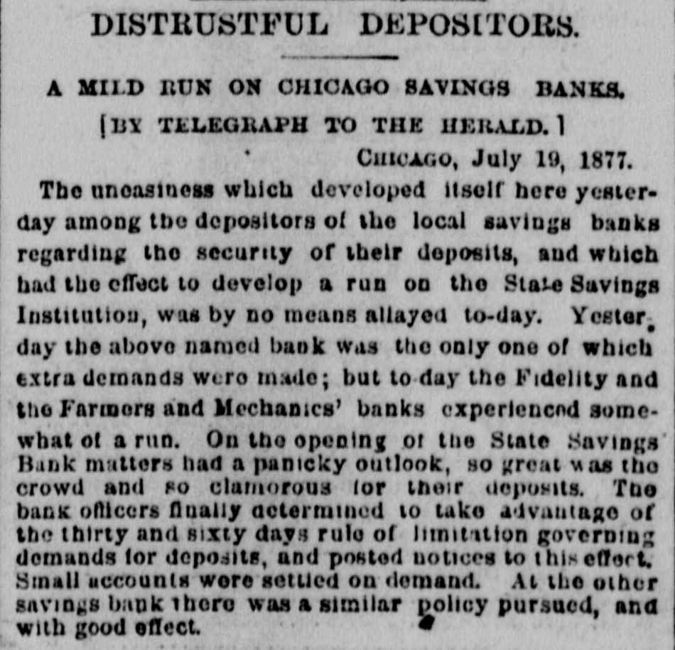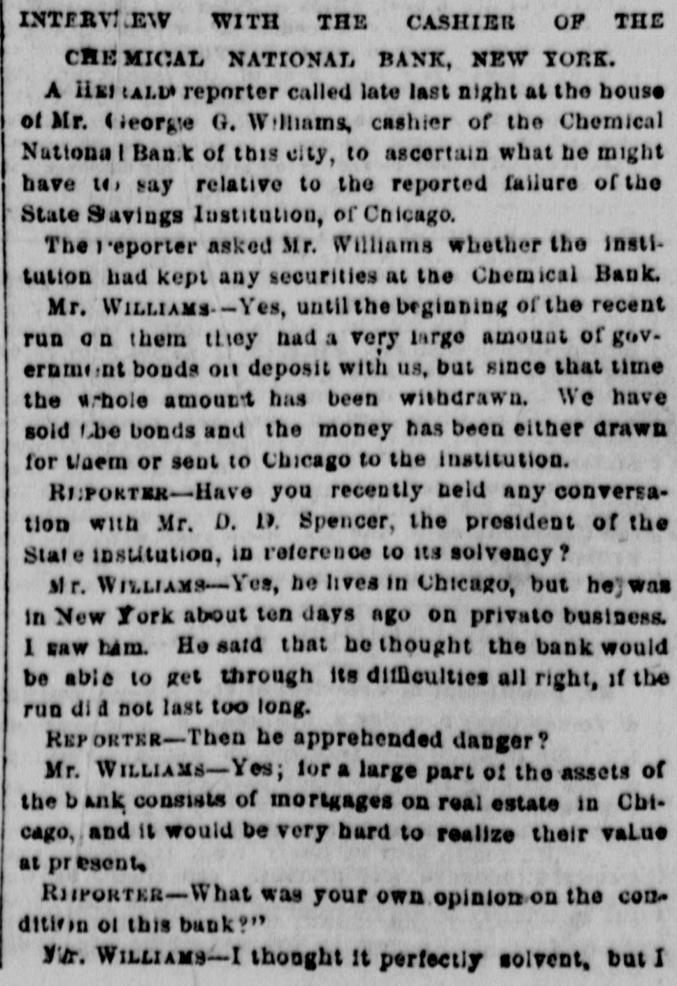 signally defeated. Though sadly crippled since the fire, it was hoped by the management that the Institution would worry through, but the series of sudden failures in St. Louis brought a run upon the quivering bank, which, in an effort to save itself, paid out from $300,000 to $400,000 of its cash means without securing the object sought-the allayingof the excitement. It was finally forced to fall back upon the sixty-day rule, though it has constantly paid out money to needy depositors. This drain, the payment of the half-yearly interest of 3 per cent on $4,000,000 of de posits, and the slow receipts of deposits, conspired to still further weaken the Institution, which, up to July 1, had paid $800,000 over its receipts, and thus parted with the bulk of itecash means. Its assets were of an unfortunate nature. Masses of real estate, which could not be turned owing to the general depression of the market, crippled paper secured by lots whose buildings had been destroyed by the fire, and an enormous amount of unimproved property, taken for debt, and valuable only as it represented a dead loss in the taxes that must be paid, made up the list. The $500,000 capital had been wiped away and the interest of the stockholders extinguished by the hard times that had eaten sadly into the prosperity of the bank, and shrunk it from a live and healthy institution to a pitiful monument of the banking system. It is estimated that nearly one-third of its loans were to mechanics and the salaried class, who borrowed to build homes, and whom the Institution endeavored by every means to assist when the hour of payment found them unable to respond. All this time it preserved its high rate of interest on deposits, notwithstanding the fact that much of its money was idle and its expenses heavy. Perhaps this outline of its affairs will remove any doubt that may exist as to the propriety of the explosion. It is certain that Mr. Spencer did not fully enjoy the confidence of the financial community. His unfortunate experience in the Cook County National, which subsequently landed high and dry, militated against him seriously, and through him against the State Savings. But he managed to stem even this tide until the troubles in St. Louis precipitated the disaster he had hoped to avert. But little could be learned of the condition of the bank for some time before the failure, and this fact, connected with surmises that Mr. Spencer had reasons for suppressing all information, did not tend to the establishment of the confidence he coveted. When the necessity for raising money became absolute, Mr. Spencer went among bankers and said he had $1,000,000 in paper good for its face, $1,000,000 in slow paper, and $1,000,000 in miscellaneous securities. Per contra, his obligations were $3,000,000, and on this showing he wanted $300,000 on such securities as he could afford to part with, claiming that this would enable him to raise from $300,000 to $500,000 in New York, with which he could restore credit. It was readily seen that he would have no first-class securities left, and that the bank must go under by the 1st of January, and bankers concluded that there would be less disappointment if it should fall now than in the winter, when less could be realized on the securities than when the corn was waving, the crops moving, and business generally more brisk. As to the dividends for depositors, Mr. Spencer has claimed that they will reach 75 or 80 per cent., or, under first-class management, 90 per cent., if the paper were sold wisely and slowly, while bad management will reduce them to 60 or 70 per cent. How much really will be realized depends upon the manner in which the vast mass of real estate can be utilized. The question whether the affairs of the bank have been managed dishonestly, or merely imprudently, is asked, and an investigation is awaited anxiously. Mr. Spencer has always been secretive, and has kept the details of his administration to himself. In how far this has been a wise course is left for time to determine. The depositors feel desirous of understanding the matter, even if they receive no other equivalent for their money. From these facts it is manifest that the State Savings Institution was doomed. No general pressure exists upon banking interests, and none was needed to cripple the foundation of this one institution. Flush times might have saved it, but flush times were necessary, and a little pinching. which has not yet affected, and will not affect, the rest, has raised the tombstone of the bank whose vitality has been sadly impaired since the fire.-Chicago Tribune, Aug. 29.
