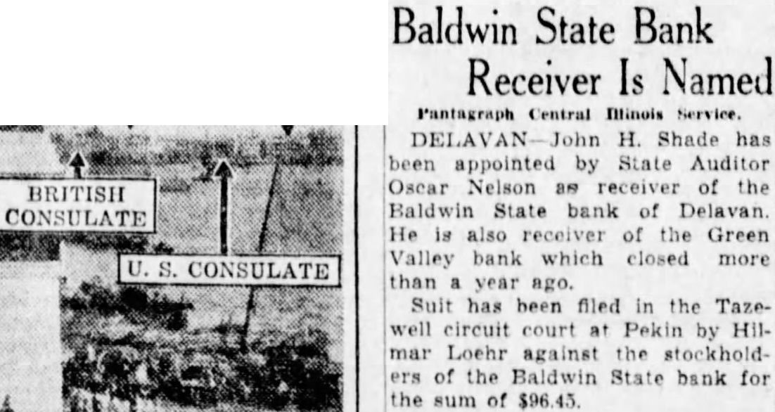 Baldwin State Bank Receiver Is Named Pantagraph Central DELAVAN- John H. Shade has been appointed by State Auditor Oscar Nelson am receiver of the BRITISH Baldwin State bank of Delavan. CONSULATE He is also receiver of the Green Valley bank which closed more CONSULATE than year ago. Suit has been filed in the Tazewell circuit court at Pekin by Hilmar Loehr against the stockholders of the Baldwin State bank for the sum of $96.45