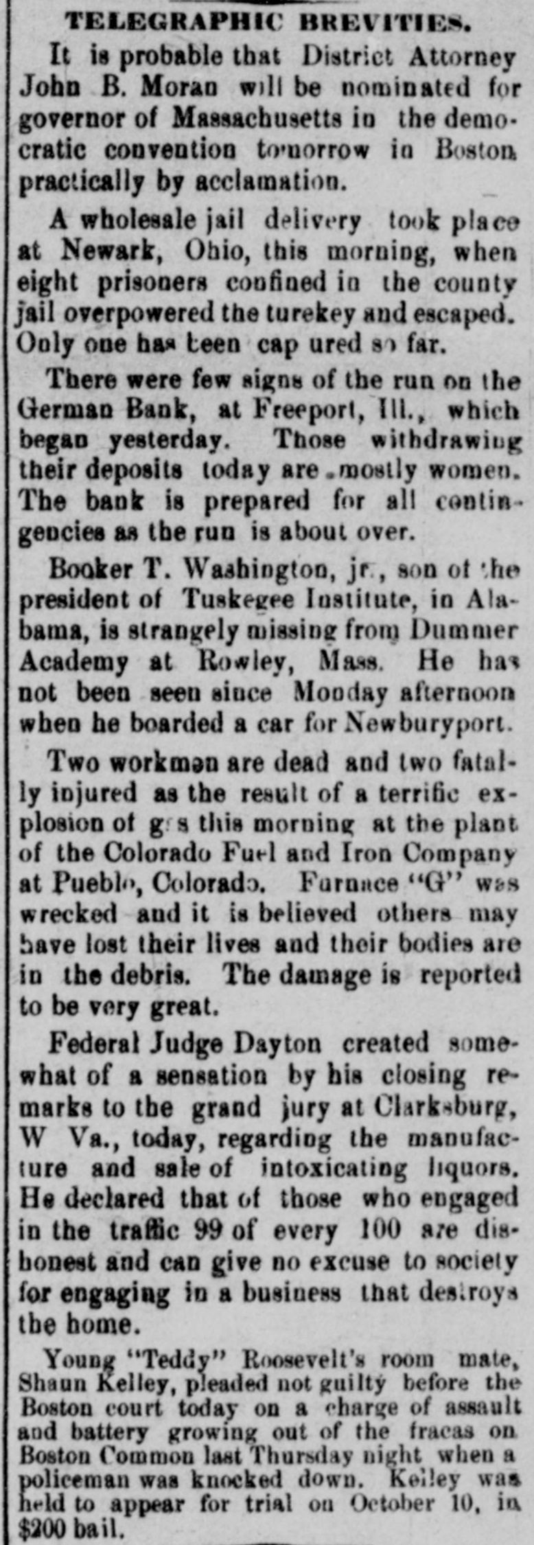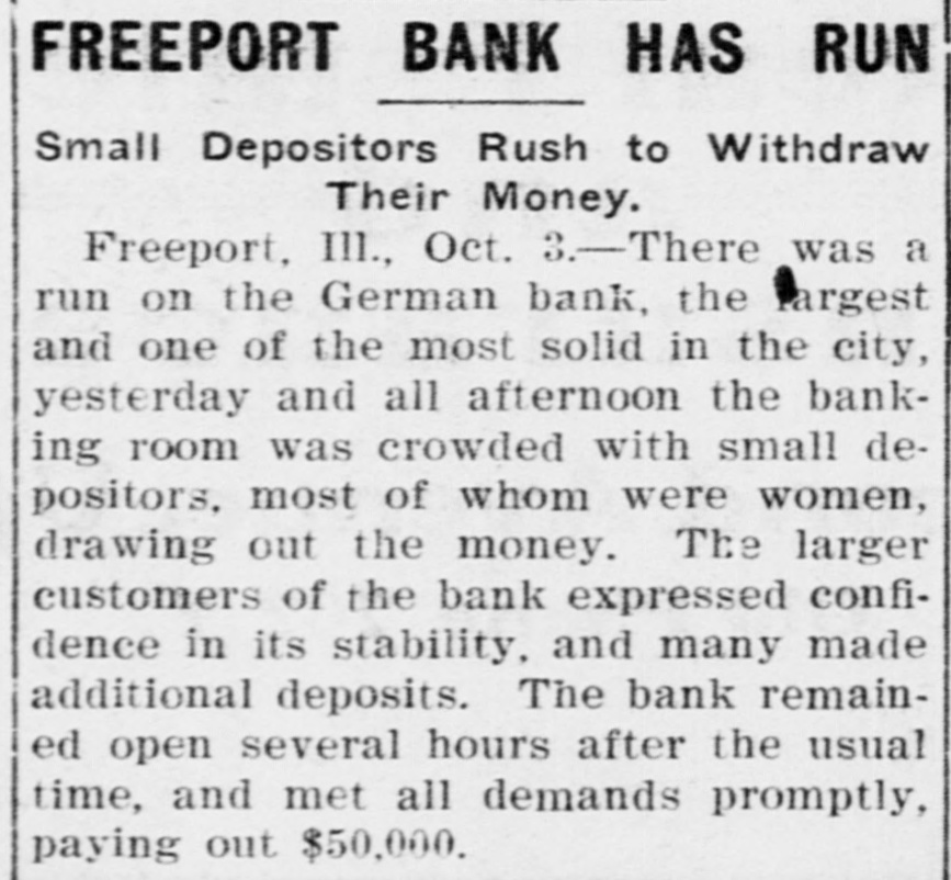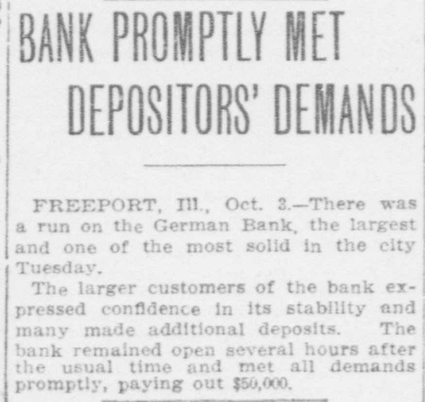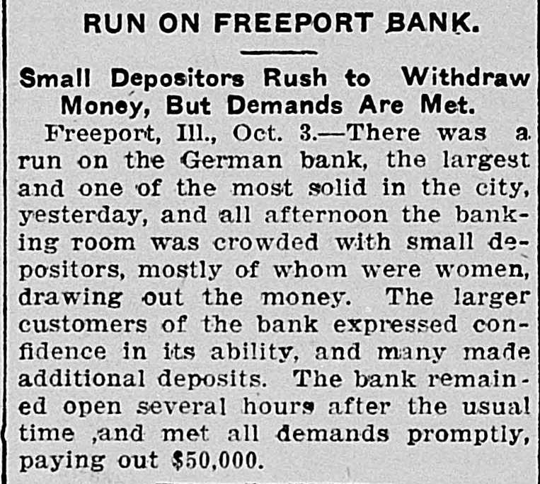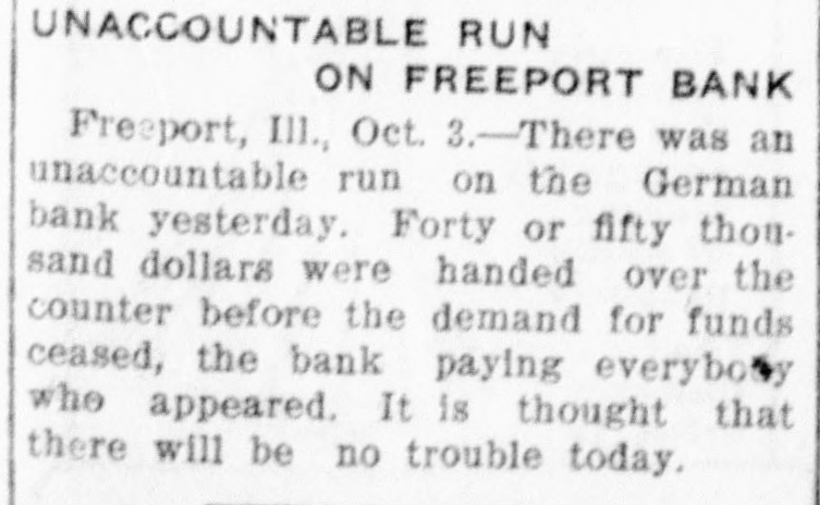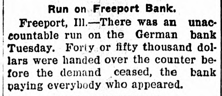 Control of the Wisconsin Central railroad reported about to be transferred to some eastern trunk line, possibly the Erie or Canadian Pacific. A run started on the German State bank at Freeport, Ill., following rumors that it was insolvent. All demands were met and the panic subsided.