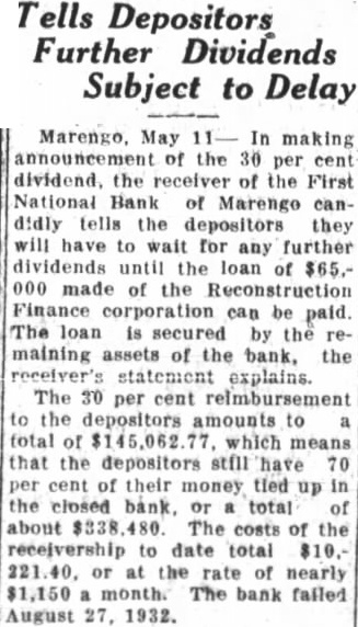 DIVIDEND FOR DEPOSITORS OF MARENGO BANK