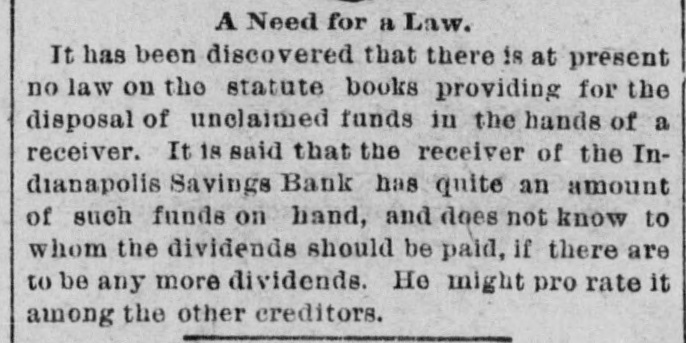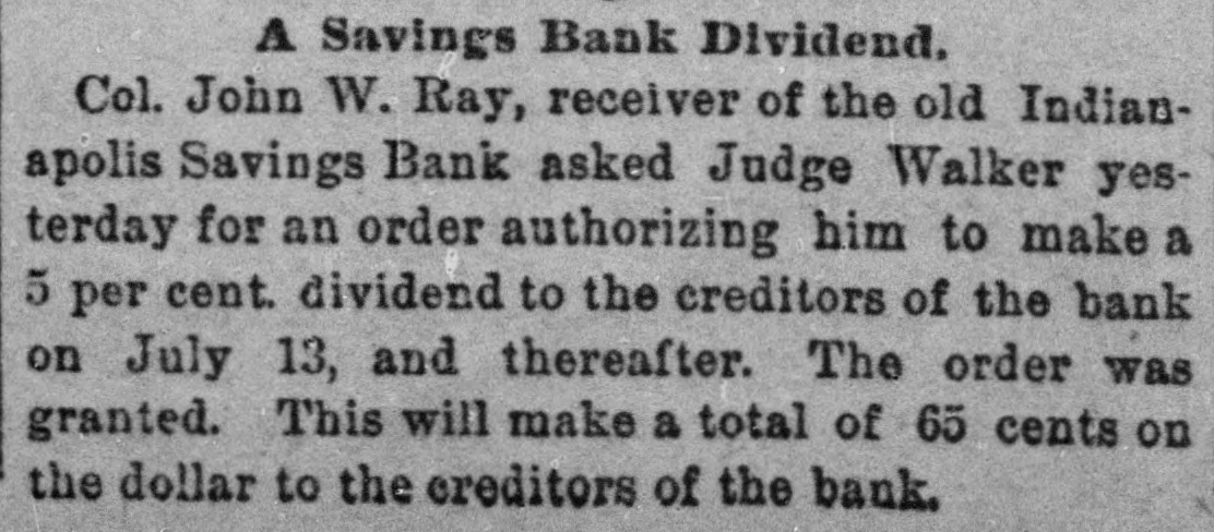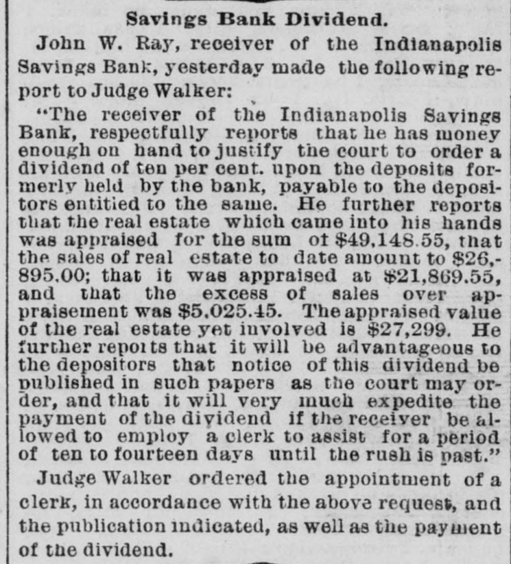 SOCIETY NOTICES. ASONIC-PENTALPHA LODGE NO. 564, F. and A. Masons. Stated meeting in MaM sonie Temple this (Thursday) evening, at 7:30 o'clock. MARTIN H. RICE, W. M. WM. H. SMYTHE, Sec'v. ANNOUNCEMENTS IVIDEND NOTICE-A DIVIDEND OF 10 D per cent. will be paid depositors of Indianapolis Savings Bank, at Bank of Commerce. JNO. W. RAY, Receiver. USINESS OPPORTUNITY-ONE-THIRD INB terest in a first-class manufacturing establishment in this city; no debts; an active partuer preferred. Address Manufacturing Co., Journal office. AROLINE E. TALBOTT, AN APPROVED minister of the Society of Friends, appoints a meeting at Friends' Church, corner of Delaware and St. Clair streets, this evening. at 7:30 o'elock. A general attendance is desired of Friends and others. THERE WILL BE A MEETING OF THE REpublicans of the Sixth Ward, at No. 124 Fort Wayne avenue, on Thursday evening, Oct. 4, 1883, at 7:30 o'clock. Let every Republican turn out. Business of importance. JOHN W. PFAFF, Committeeman, WANTED ANTED-A GOOD STEADY GIRL FOR W housework in small family. 499 E. Ninthst. ANTED-GOOD SOLICITORS WILL FIND W It to their interest to call at 22 South Pennsylvania street, Indianapolis, Ind. ANTED-HIGHEST CASH PRICE PAID W for the best of second-hand clothing. Address Mrs. A. SELLERS, 125 Massachusetts avenue. ANTED-THE CHEAPEST NEWSPAPER W in the West. the Weekly Indiana State Journal. One dollar per year. Ninety cents in clubs of five and over. ANTED-A MILLER OF GOOD, STEADY W habits will find constant employment 26 good wages by addressing E. HALBERSTADT, Union Mill, Urbana, 111. ANTED TO RENT-MODERN BUILT W house, about 10 rooms, with all improvements, bath room, etc., in first-class location only. H. C. LEVI, Model Clothing Co. ANTED - AN EXPERIENCED CIGAR W salesman for this teritory, on commission; reference required. Address MARVIN W. RUDD. 94 Warren street, New York City. ANTED-CANVASSERS IN EVERY CITY W and town, for the Art Folio. a new and popular illustrated monthlv. Liberal terms. Address T. H. EDWARDS, 198 South Desplaines street, Chicago. ANTED-INVENTORS TO APPLY TO W Smith & Loeper, patent solicitors, before employing attorneys. Best of references given, and satisfaction guaranteed. Room 28, over 29 North Pennsylvania street. ANTED-ENERGETIC, RELIABLE MEN, W to sell Trees, Grapevines, Shrubs, Roses, etc. Salaries and expenses paid. Experience not essential. Mention this paper. Address LECLARE & HERRICK, Brighton, N. Y. ANTED LADY AGENTS FOR THE W "Queen Protector," a new undergarment for ladies, made of soft, flexible rubber; sure protection to the underwear when necessary to be worn. Retails for $2 as fast as agents can show it. Large profits. Address, with stamps, Ladies' Undergarment Manufacturing Co., 9 South May street, Chicago, III. FINANCIAL ONEY TO LOAN AT LOWEST RATE OF interest. E. B. MARTINDALE & SONS. M ONEY TO LOAN ON CITY OR FARM M property. U. M. STODDARD, Claypoot Building. ONEY AT THE 'LOWEST RATES OF INM terest. J. W. WILLIAMS & CO., 3 and 4 Vinton Block. ONEY TO LOAN ON FIRST MORTGAGE M of city and farm property in Indiana and Ohio. Low interest. JOS. A. MOORE, 84 East Market street. E WILL FURNISH MONEY ON FARM W security. promptly. at the lowest rates for long or snort time. THOS. C. DAY & CO., 72 East Market street FOR SALE RSALE-ONLY ONE DOLLAR PER YEAR the Weekly Indiana State Journal. Send for it. FOR SALE-FARMS. CHEAP. ON LONG credit. Send for circular. Blue grass pasture for rent, cheap. FRANCIS SMITH & CO. ORSALE-AN ASSORTMENT OF SECONDhand engines, bollers. and sawmills in good order. HADLEY. WRIGHT & CO., coruer Tennessee and Georgia streets. Indianapoiis. FOR RENT. OR RENT-THE SPACIOUS STOREROOM in Odd-fellows' Hall Building, formerly occupied as a dry goods store. Pennsylvania street front may be rented separately. Apply to ALEX. METZGER, Real Estate Agent. AUCTION SALES. UNT & McCURDY. REAL ESTATE AND H General Auctioneers. 88 E. Washingtonst.