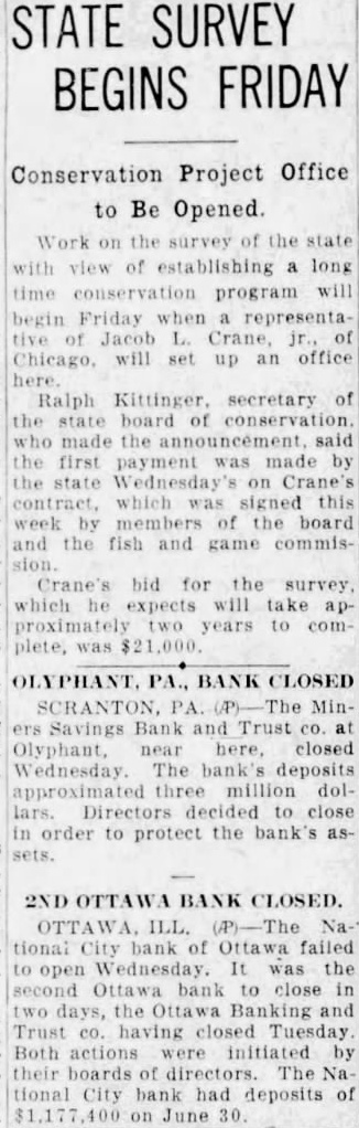 CLOSE OTTAWA BANK III., Sept. Because reported failure to get financial assistance from Chicago banks during the National City Bank closed doors today The run began, after the closing the Ottawa Banking and Trust Company yesterday. National City Bank was capitalized for $200.in solvent condition 2716 depositors will get 100 cents on the dollar. officers said.
