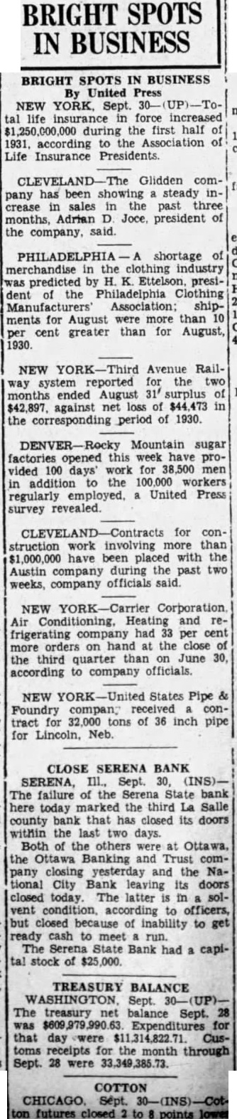 Sept. 25, 1931 S Darrow Leickem and lots 54 55, Beach View Sub. sec 33, Benton. and Co W Abel and tens deed lot blk 53 Round Lake Avon. Bank to and Berg tens deed lot 39, blk Round Beach Sub, Avon. Gonyo Pt of SW sec Libertyville. Mason to Hinton and tract of in H Bartlett to Arbuthnot deed, pt froctl sec Benton. wf Reardon SE qr of NE Cuba Schwartz and wf to Schwarts 3% lot blk lot 46, blk Ravinia lands. Paul and hus to E Evans and tens 165, Pleasant sec Rockenbach and to Heybeck and wf tens tract sec Ela. Uhler Whipp Golf Links Addn, sec 27, Deer-
