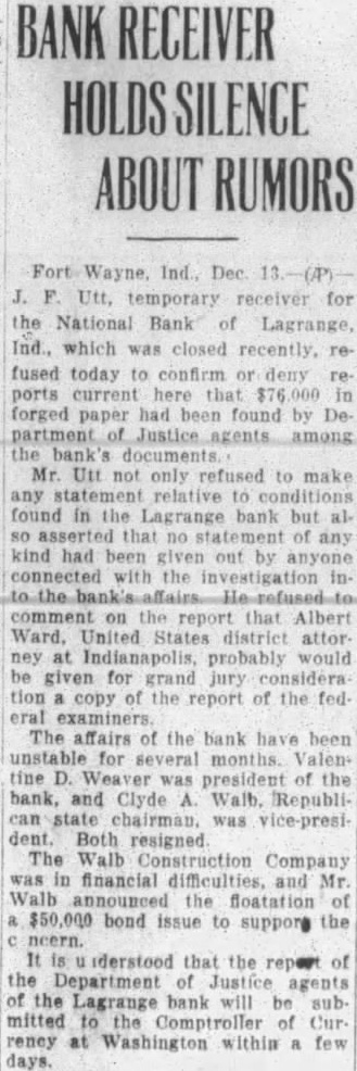 What Walb anything after the survey made him by Fenton, who frankly his size-up of the and especially of Foley, yet disclosed. That influence changed the minds various board this notorious case evident the record. In discussing the affairs of the which cializes in ditch drain work, regular finanfiled this office July that time affairs were reported "Along heard rumors LaGrange bank, of which had viceafter State Banking Examiner's Securities Weatherholt to LaGrange to these Stock Sale Halted