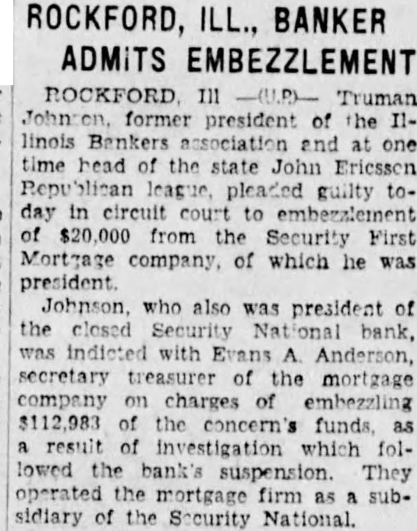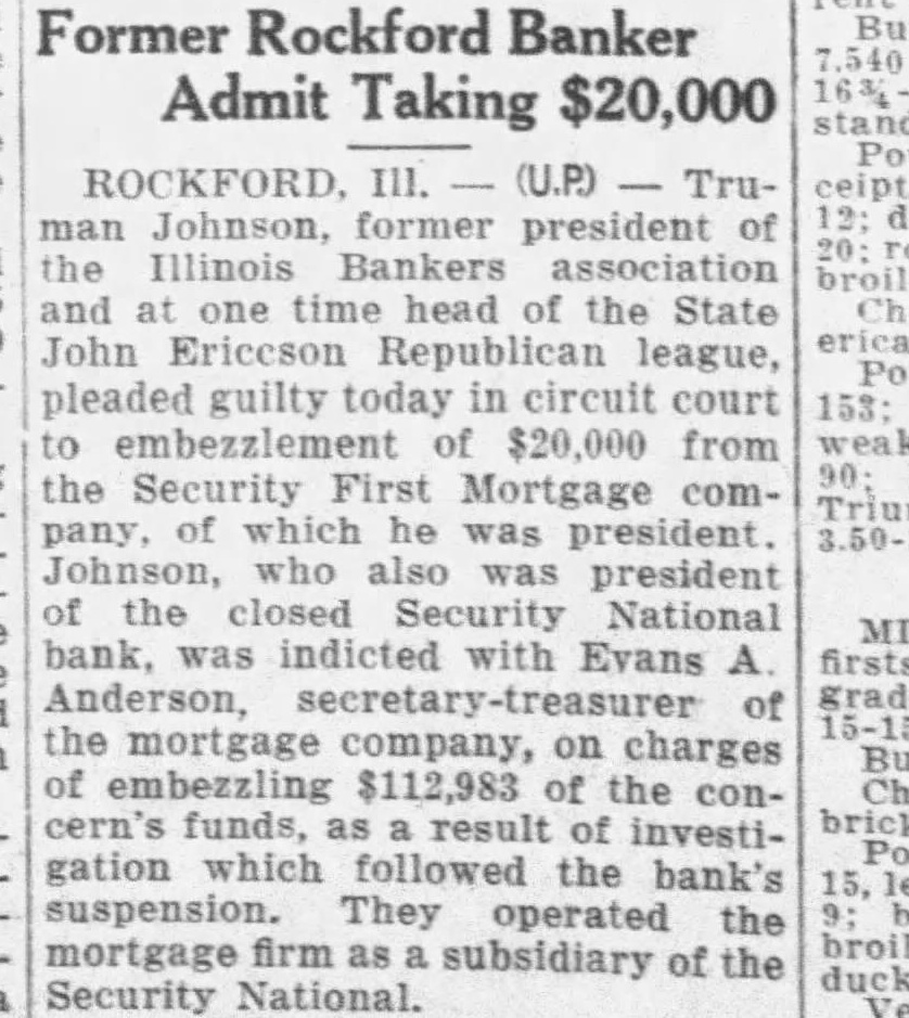 3 BANKS CLOSE MID-WEST ROCKFORD, III., June 15 (I. N.S.).-Three banks with combined deposits of almost $6,000. 000 closed their doors here today on the heels of a jubilee celebration designed to mark the return of prosperity. The institutions were the Man ufacturers National. the Security National and the Peoples State Rockford has five other banks. all nationals. INDIANAPOLIS Ind. June 15 (I.N.S. .-Closing of the Amer ican Trust Company $5,370. 000 institution at South Bend. Ind.. because of frozen assets. was announced here today by Luther D. Symons. State bank commissioner PONTIAC Mich. June 15 (I.N.S.) The Pontiac Commer cial and Savings Bank. with listed assets of $16,000,000. failed to open its doors here today A heavy run on the bank is believed to have caused the action Officials declared that $2,300,000 in cash had been withdrawn during the past five days.