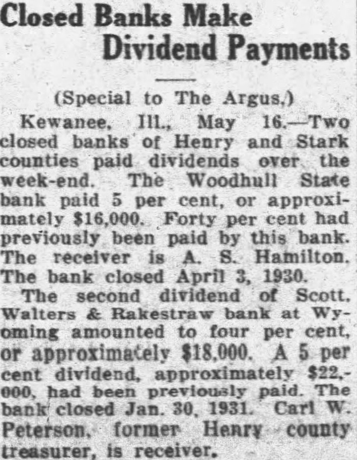 Bank Receiver at Woodhull Is Sued By Shipping Assn. March ceiver of the Woodhull bank. made the defendant in Henry county circuit court brought by the Woodhull whereby collect which through the bank, one day after closed doors. that the bank had no legal right receive amount after had become Attorney E. Stickof Galesburg the ney and Wallace shipping Thompson, also of Galesburg, represented Hamilton. The association shipped cattle 'worth to the Chicago marMarch The took April and the following the Stock Yards National bank sent the money Woodhull Judge Telleen took the under case started yesterday in circuit court this county, when declaration was filed the of Horberg, clerk the court, wherein Dorothea Anderson brings trespass the for against White of Kewanee and Herman Kretschmen of Cook county. alleged that the complainCarl Anderson, unskillfully treated by the Attorneys Brown and Higgs Geneseo Ray Lane represent Mrs Anderson.