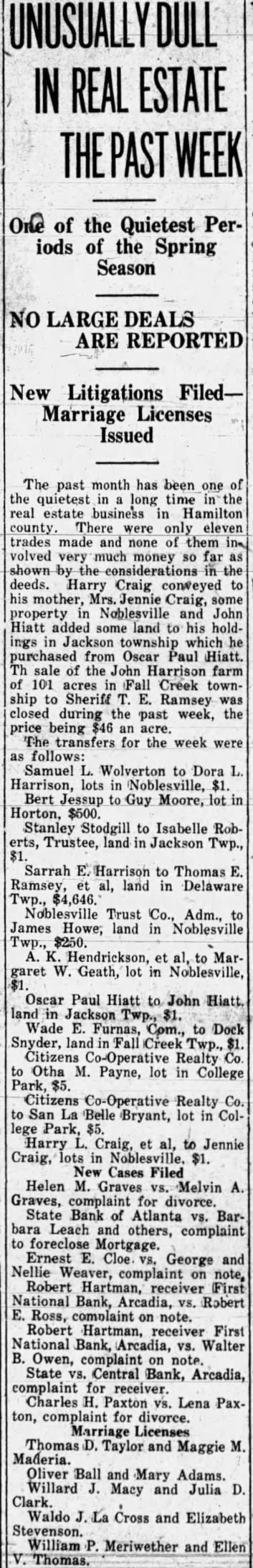 Lester V. Heiny was granted a divorce by Judge Hines, Monday morning, on the showing that Mrs. Heiny was convicted of a crime in the court some months ago, and is now serving a sentence in the Women's prison, at Indianapolis. She was sent for six months and was fined $500, and her sentence is probably out but she still has some time to serve on account of the heavy fine. She was sentenced on account of contributing to the delinquency of a minor girl. Mr. and Mrs. Heiny were married in 1921 and separated in 1928. Mrs. Heiny was not represented by an attorney in court and under the law, the Prosecuting Attorney Fertig filed the legal answer for Mrs. Heiny. Worth Castor represented Mr. Heiny this being his second case in court, representing the firm of Christian & Waltz. Mr. Heiny lives with his father northA former divorce case was filed, but later dismissed and the present case was on a second effort to secure divorce.