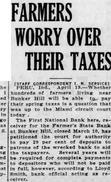 Allow Bunker Hill Claims. Claims amounting to $8,066.94 were granted on petition by Judge Hurd Hurst in circuit court in receivership proceedings of the old Farmers State Bank Bunker Hill. Attorney fees of $4,055.58 were grant the firm of Rhodes & Rhodes. The First National Bank; as receiver, was allowed SS.411.38. The affairs of the bank are nearing final settlement, having been receivership March 14, 1927. About $219,000 in net cash has been collected by the receiver. more than 650 acres of real estate disposed of, as well as other pieces of property. The general creditors have rcceived percent dollar. The expense of has been about 10: percent of the net assets, or 7.percent of the gross assets. Previous fees paid brings the total for the law firm $8,787.56 and for the First National bank to about $6,452.38.