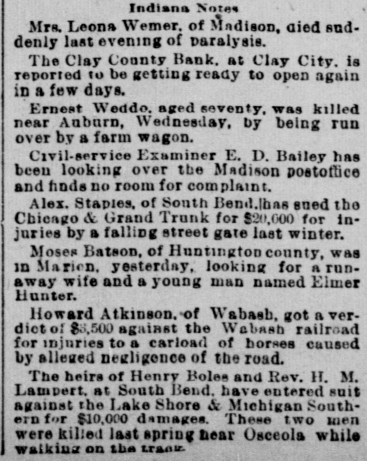 REPORT ON STATE BANKS IS MADE BY THE BANK DEPARTMENT OF THE AUDITOR'S OFFICE. It Shows the Number of State Banks Organized During the Year, the Number of Failures-Two Trust Companies, Both of This City, Have Been Incorporated. The annual report of the bank department of the state auditor's office has been printed. It is for the fiscal year ending Oct. 31, 1893, and shows that during the year the following state banks have been incorporated, making a total of eighty-seven in the state: Monroe county state bank of Bloomington, Citizens' bank of Clinton, Garrett banking company of Garrett, State bank of Indiana at Indianapolis, Citizens' state bank of Knox, Logansport state bank, State bank of Lowell, Union loan and trust company of Richmond, Parke bank of Rockville, State bank of Veedersburg, Williamsport *state bank of Williamsport. The financial panic of last spring compelled the following banks to close their doors and their affairs are being wound up: State bank of Churubusco, Clay county bank of Clay City, Farmers' and Merchants' bank of Covington, Farmers' and Merchants' bank of Fairmount, Farmers' and Merchants' bank of Geneva, Farmers' bank of Otterbein, Commercial bank of Oxford, Bank of Russiaville, Bank of Spiceland. The Delaware county bank at Muncie reorganized as a national bank and the Citizens' bank at Knox sold its business to a private bank. These changes have left eighty-seven banks operating under state law at the date of this report. These failures are the first that have occurred since the enactment of the present state bank law in 1873, and were largely owing to alliances with financial schemes, the practicability of which were always doubted by this department, and which has made all the effort that it could to prevent them. The law, however, does not give the auditor of state sufficient authority to stop practices by banks which seem to him unsafe. The failure of these banks. with two or three exceptions, will not cause loss to depositors. The report shows that the savings banks, of which there were five at the close of the year, are in a. perfectly solvent condition, but suffered, like all other banks. in the withdrawal of deposits during the spring and summer. Whenever necessary, the provisions of the law under which they are operating and their by-laws, requiring notice of withdrawals, were taken advantage of, thus preventing a sacrifice of their securities. Two trust companies have been organized under the law passed by the last general assembly providing for their incorporation. They are the Indiana trust company and the Union trust company, both of Indianapolis. Statements of their condition are submitted. showing their exact assets and liabilities at the close of the fiscal year.